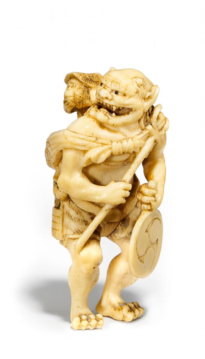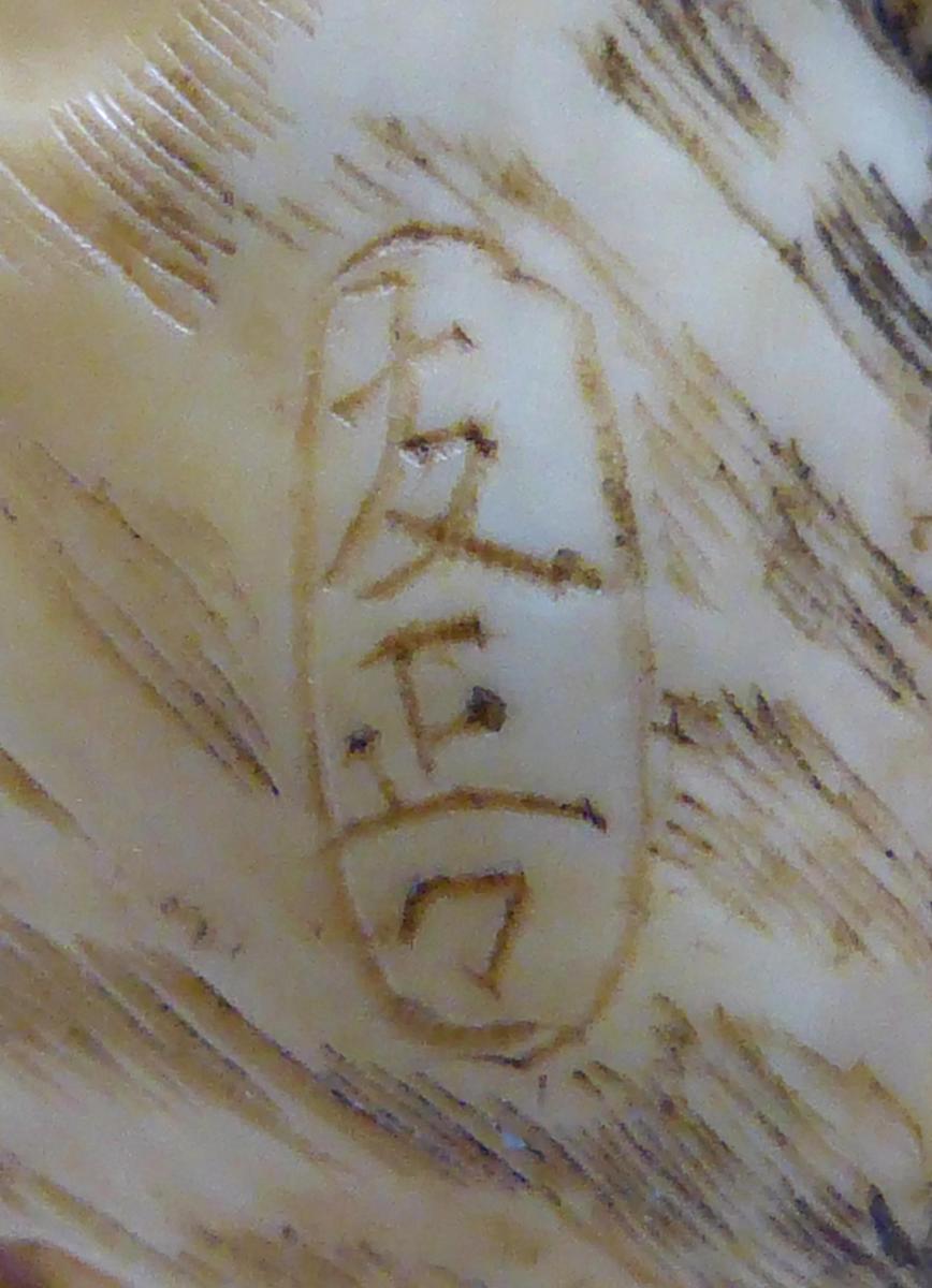 Technik: Elfenbein, fein graviert und eingefärbt.