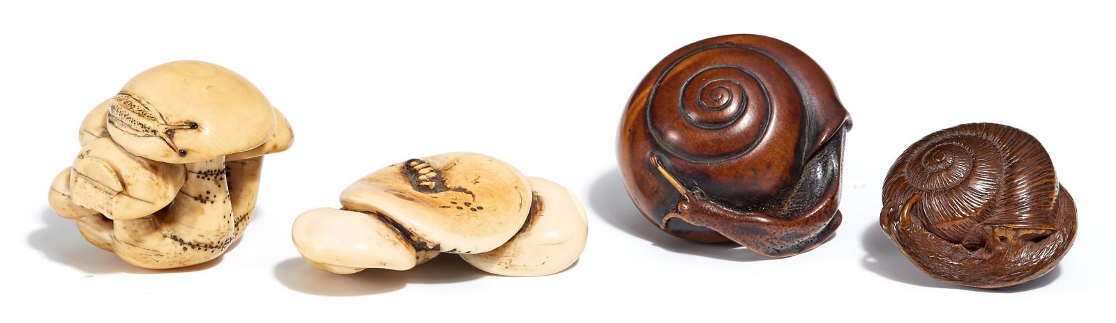 NETSUKE. PILZGRUPPE. ELFENBEIN. SIGN.: TOMOTADA.