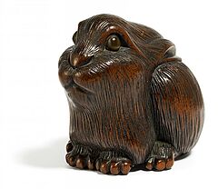 NETSUKE: SITZENDER HASE.
