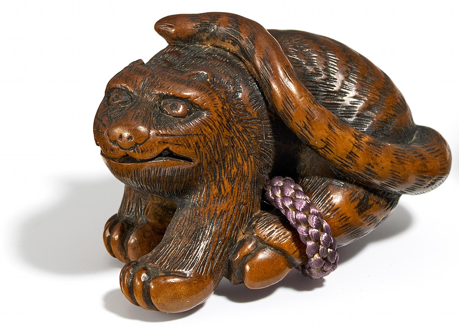 Technik: Buchsbaum, fein geschnitzt und graviert, die Gravuren dunkel akzentuiert.
