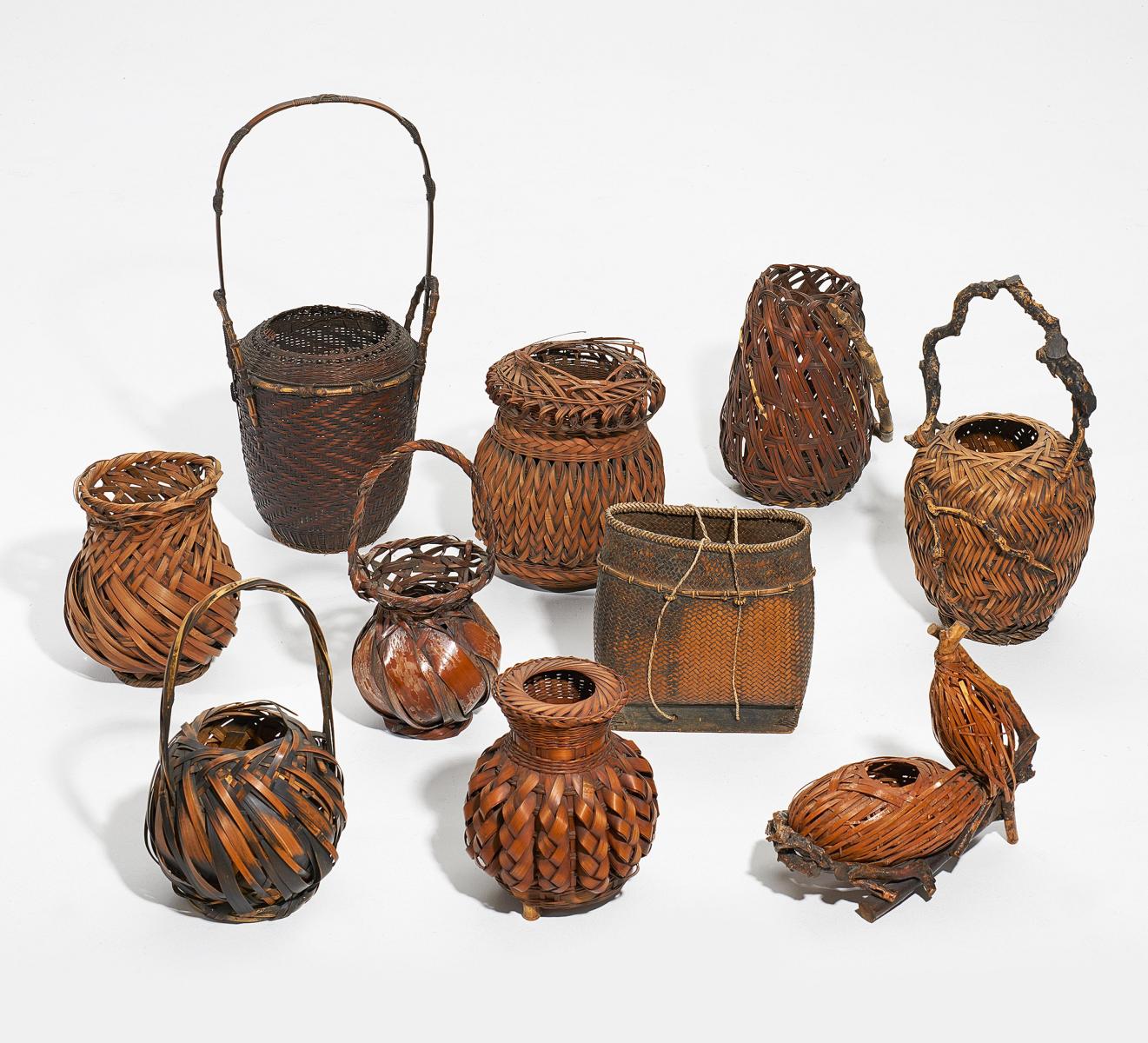 Technik: Geflochten aus dunkel gebeizten Bambusstreifen und Wurzelholz.