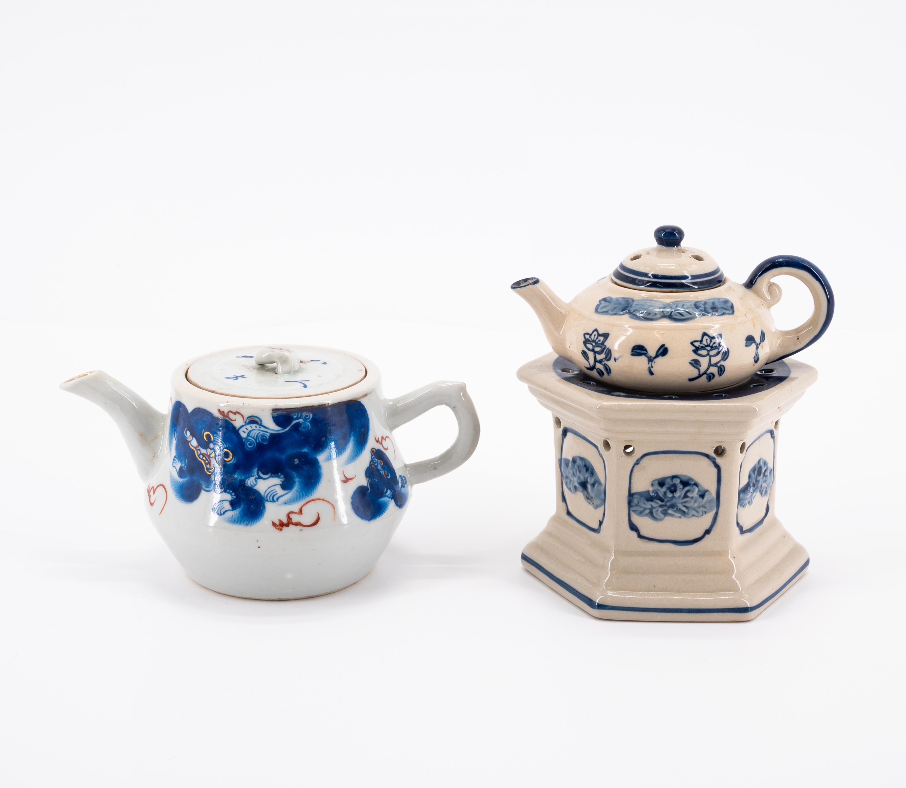 Beschreibung: Bestehend aus 1 Stövchen, 2 Koppchen, 3 kleinen Tellern, 1 Teekanne, 1 Teeextraktkanne, 1