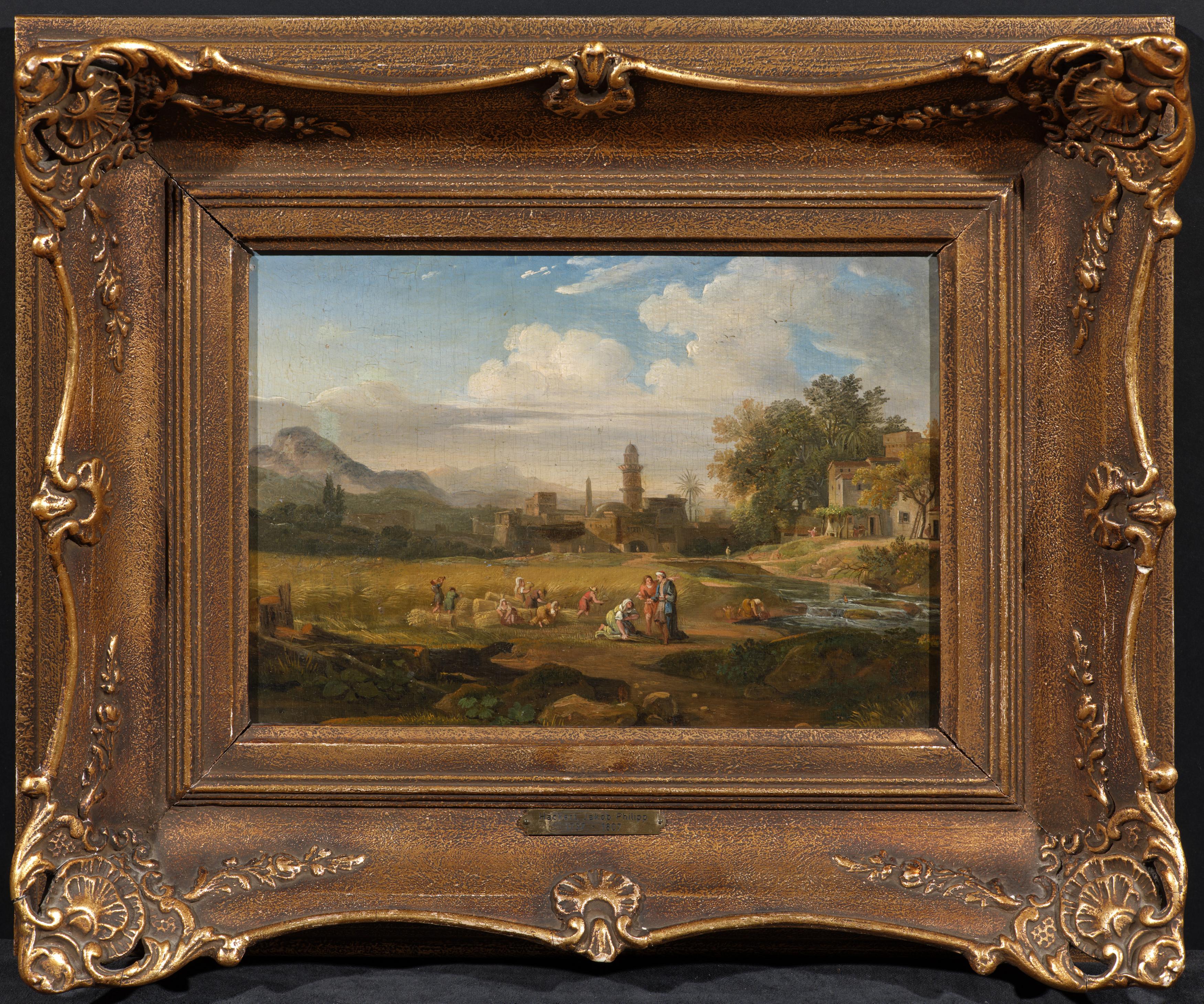 ORIENTALISCHE LANDSCHAFT MIT BÄUERINNEN BEI DER HEUERNTE