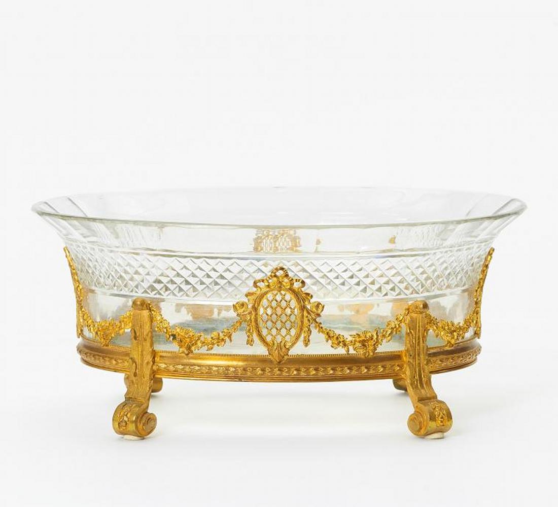 OVALE AUFSATZSCHALE AUF VOLUTENFÜßEN.