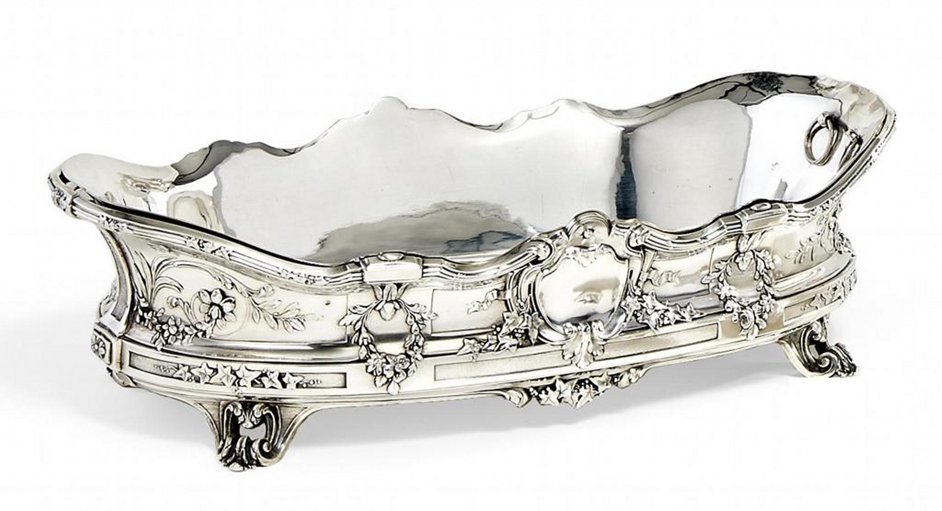 OVALE JARDINIÈRE MIT KARTUSCHEN UND EFEUZIER.