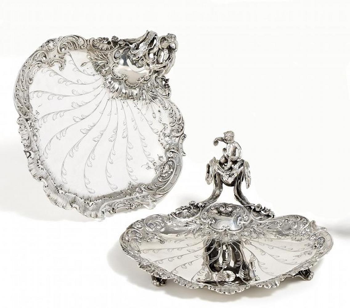 PAAR ANBIETSCHALEN MIT MUSCHELDEKOR UND PUTTENZIER.