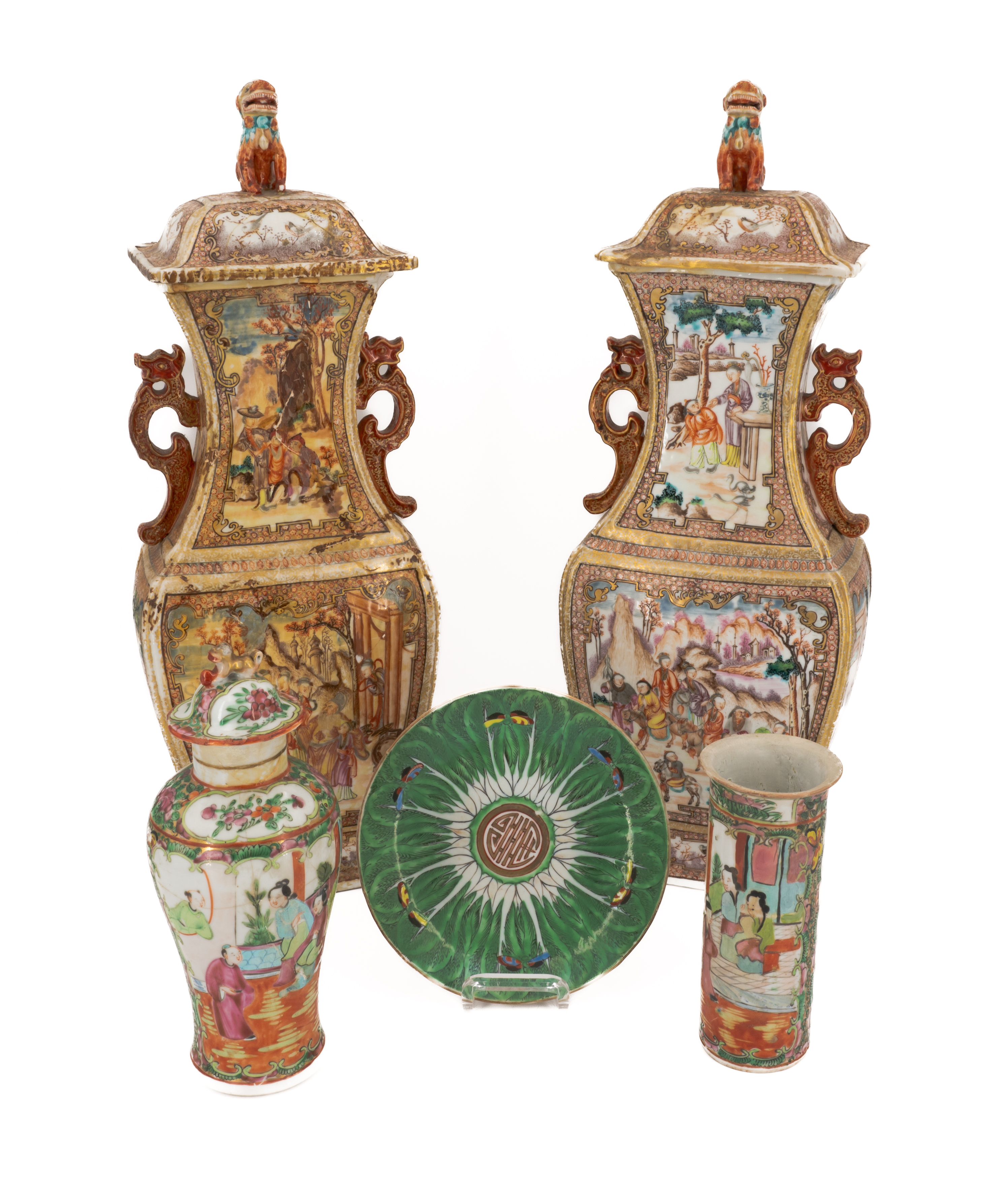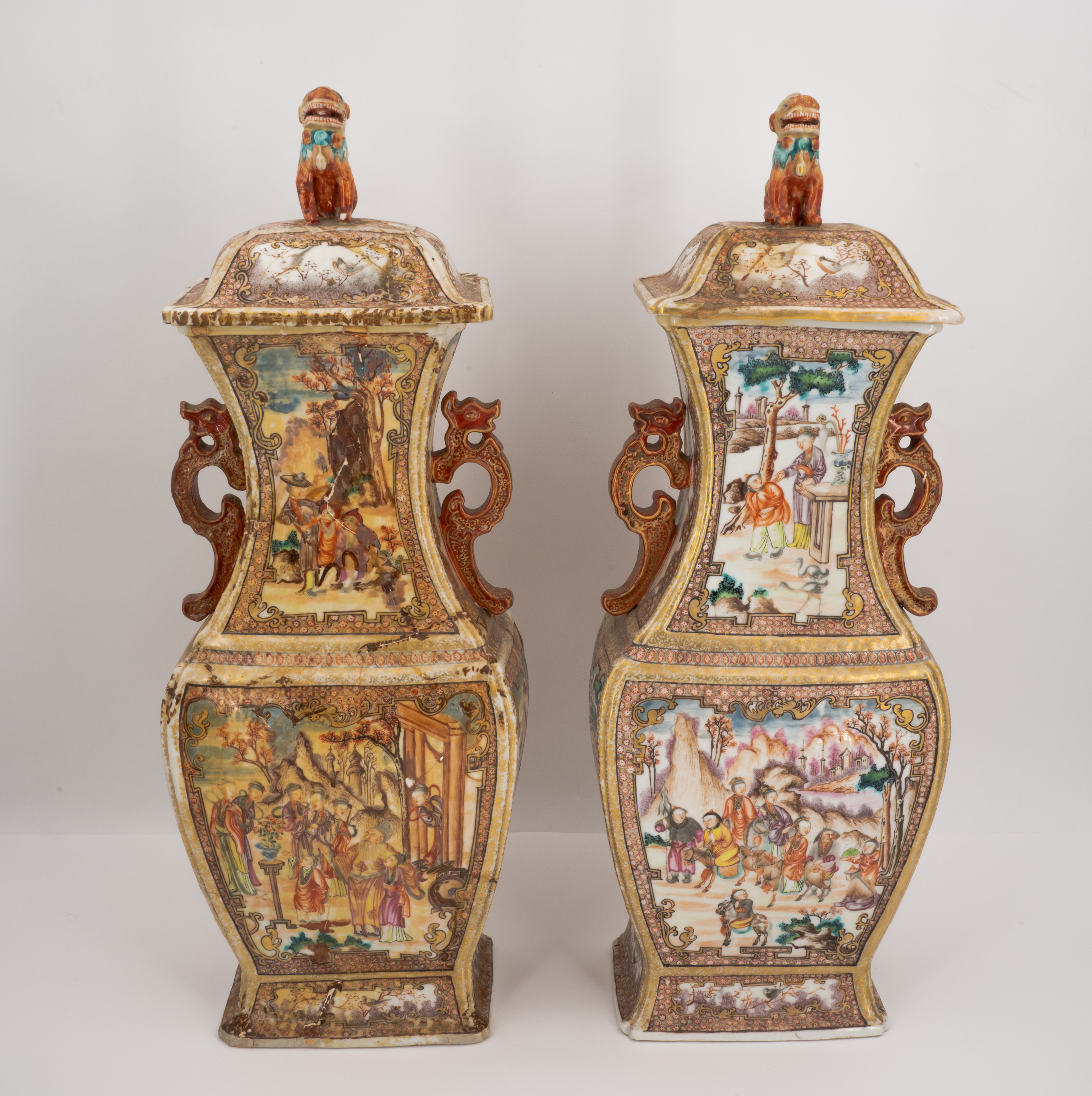 PAAR BALUSTERVASEN MIT FIGURENZIER IM KANTON STIL.