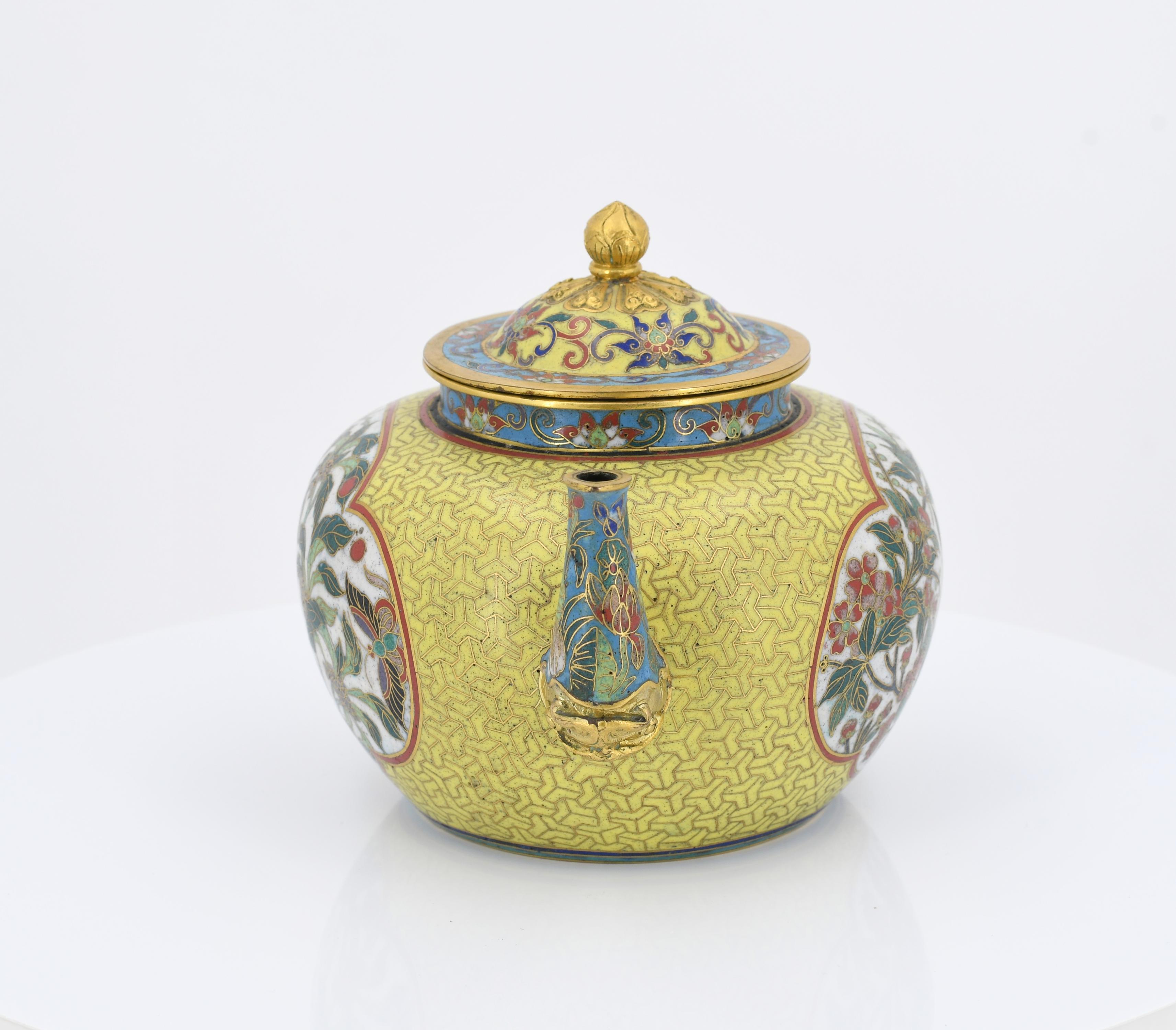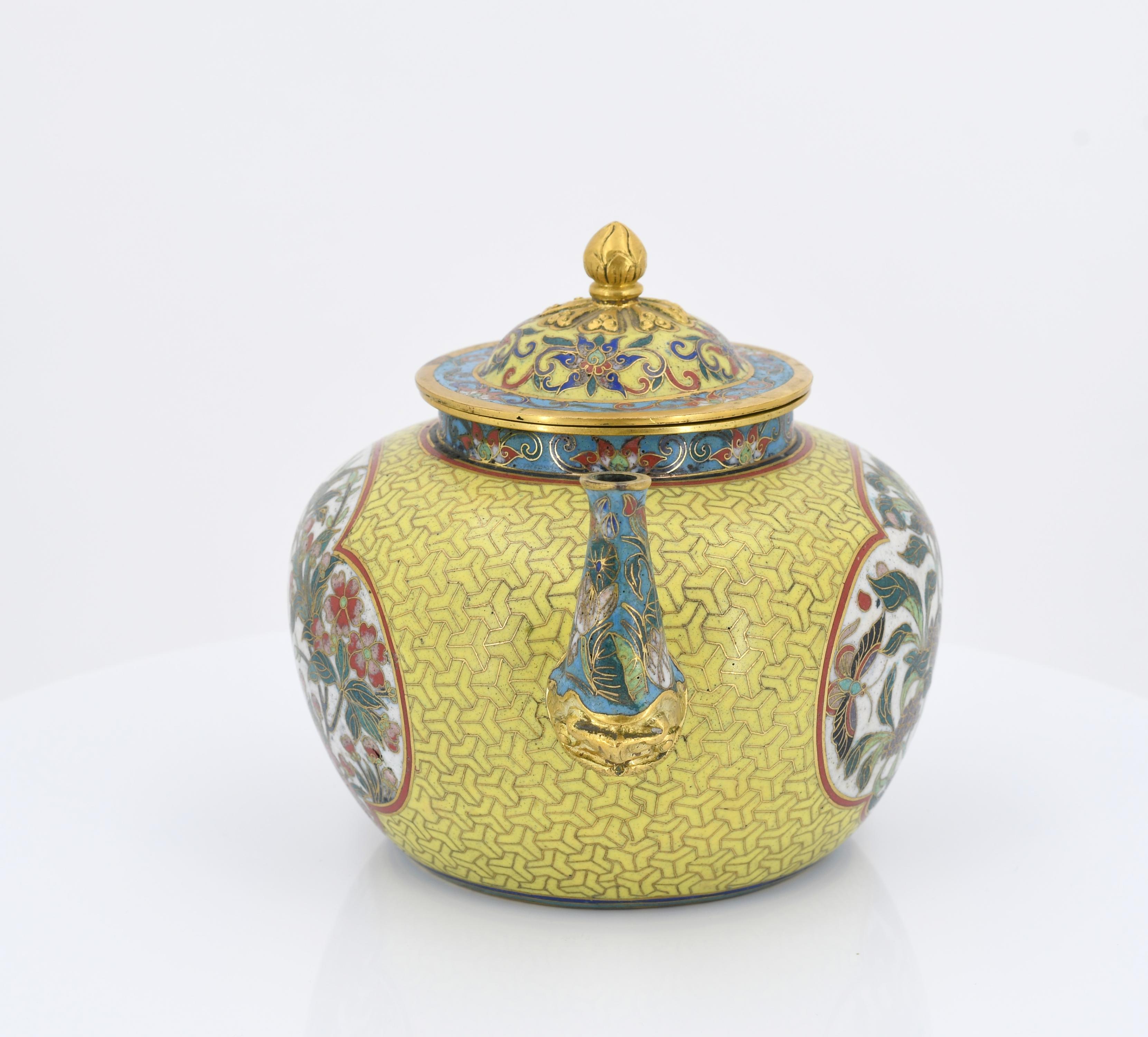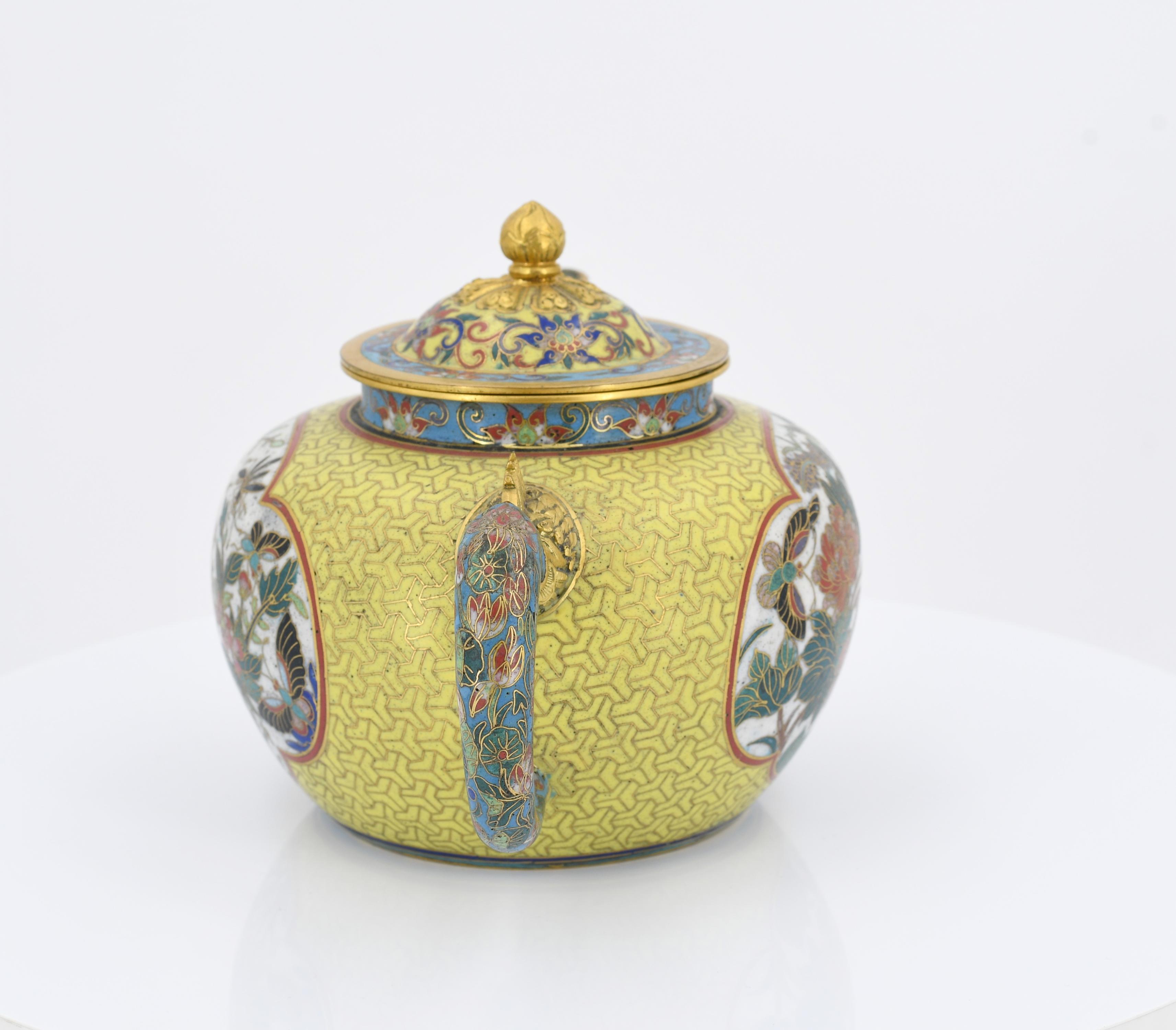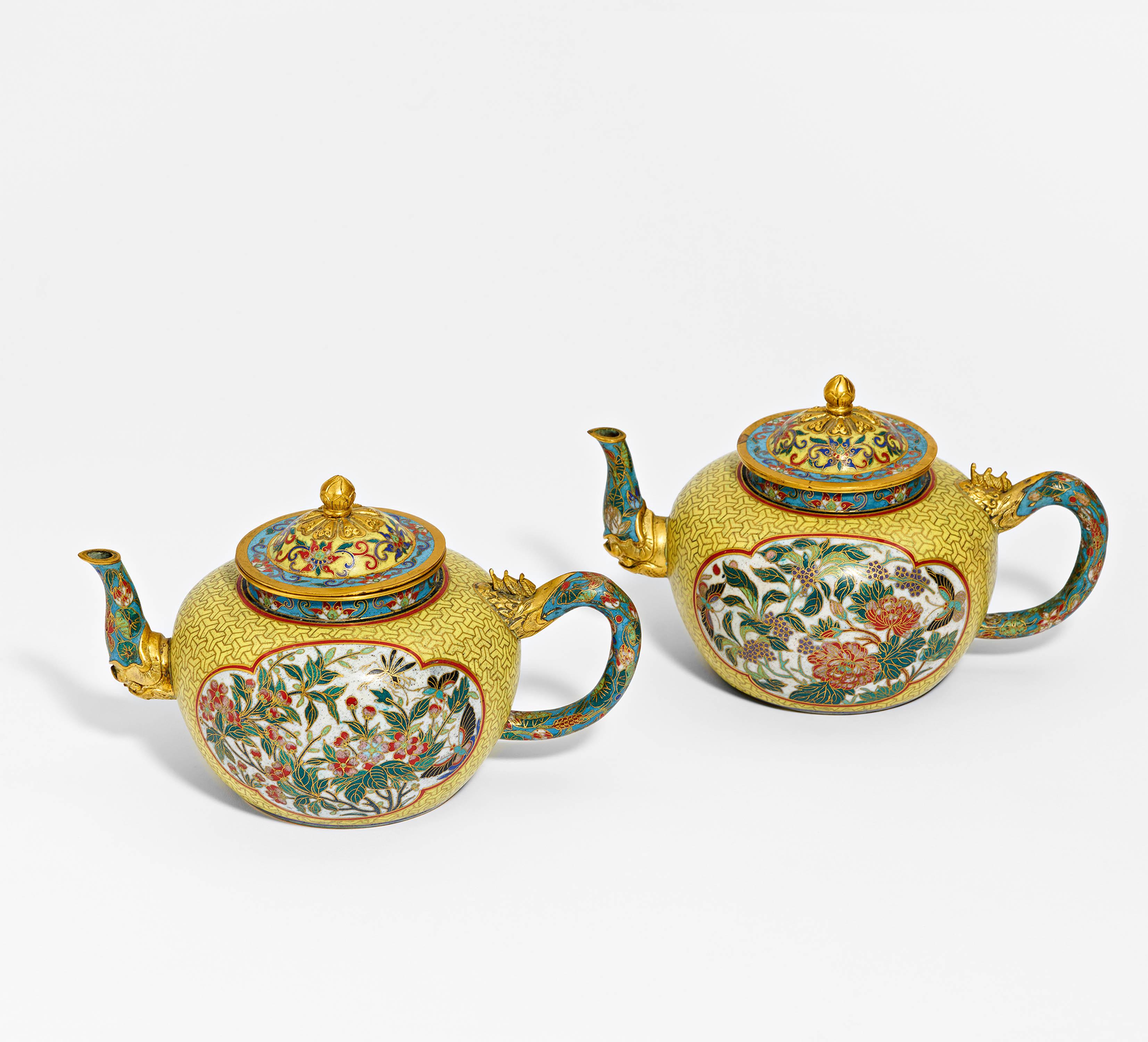 PAAR CLOISONNÉ TEEKÄNNCHEN.