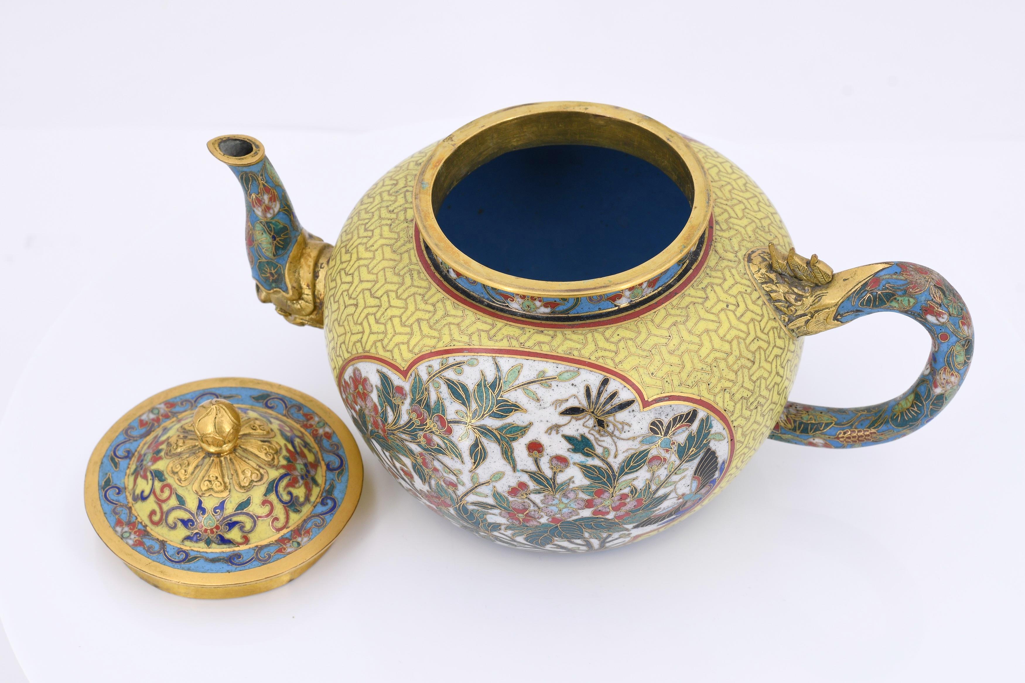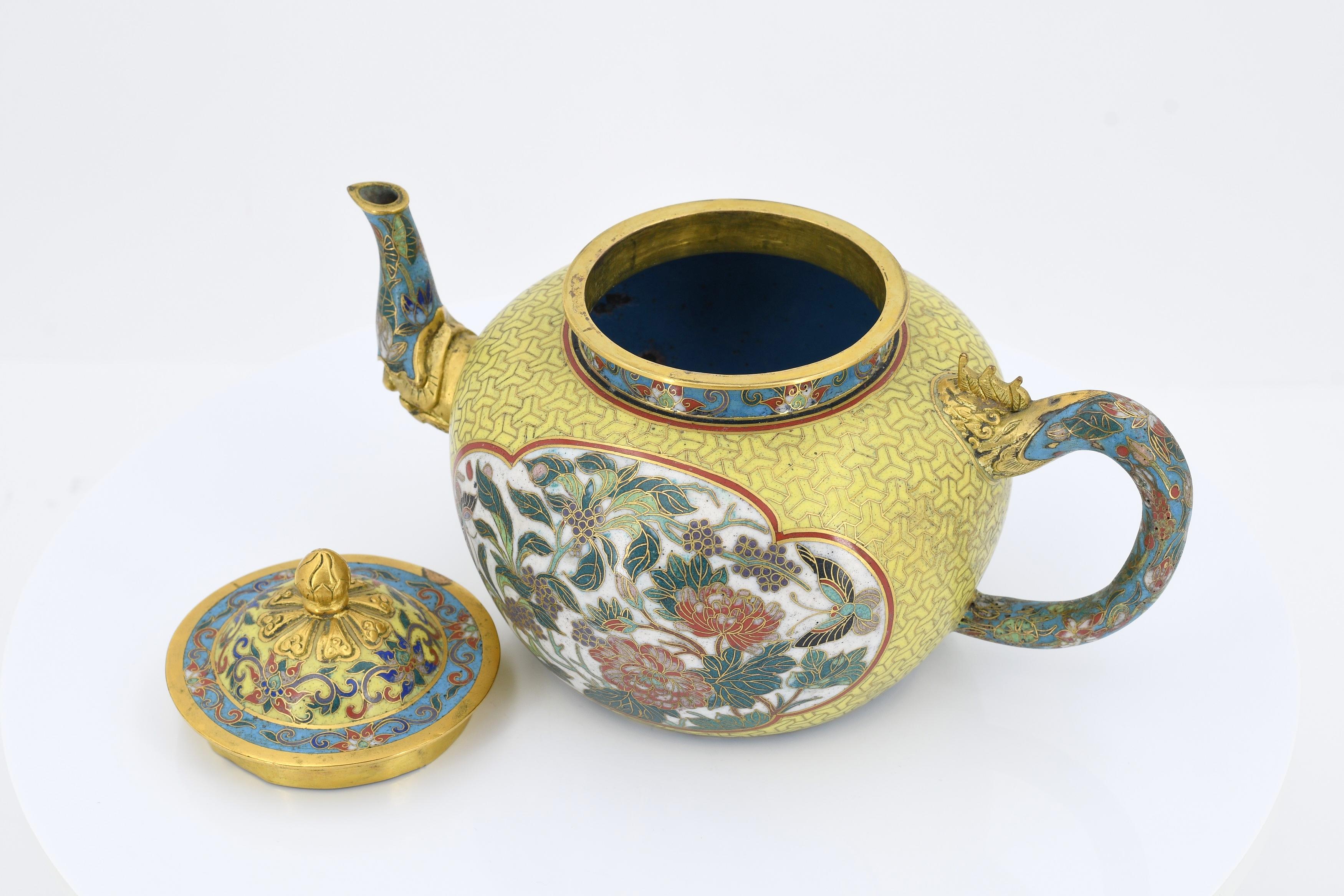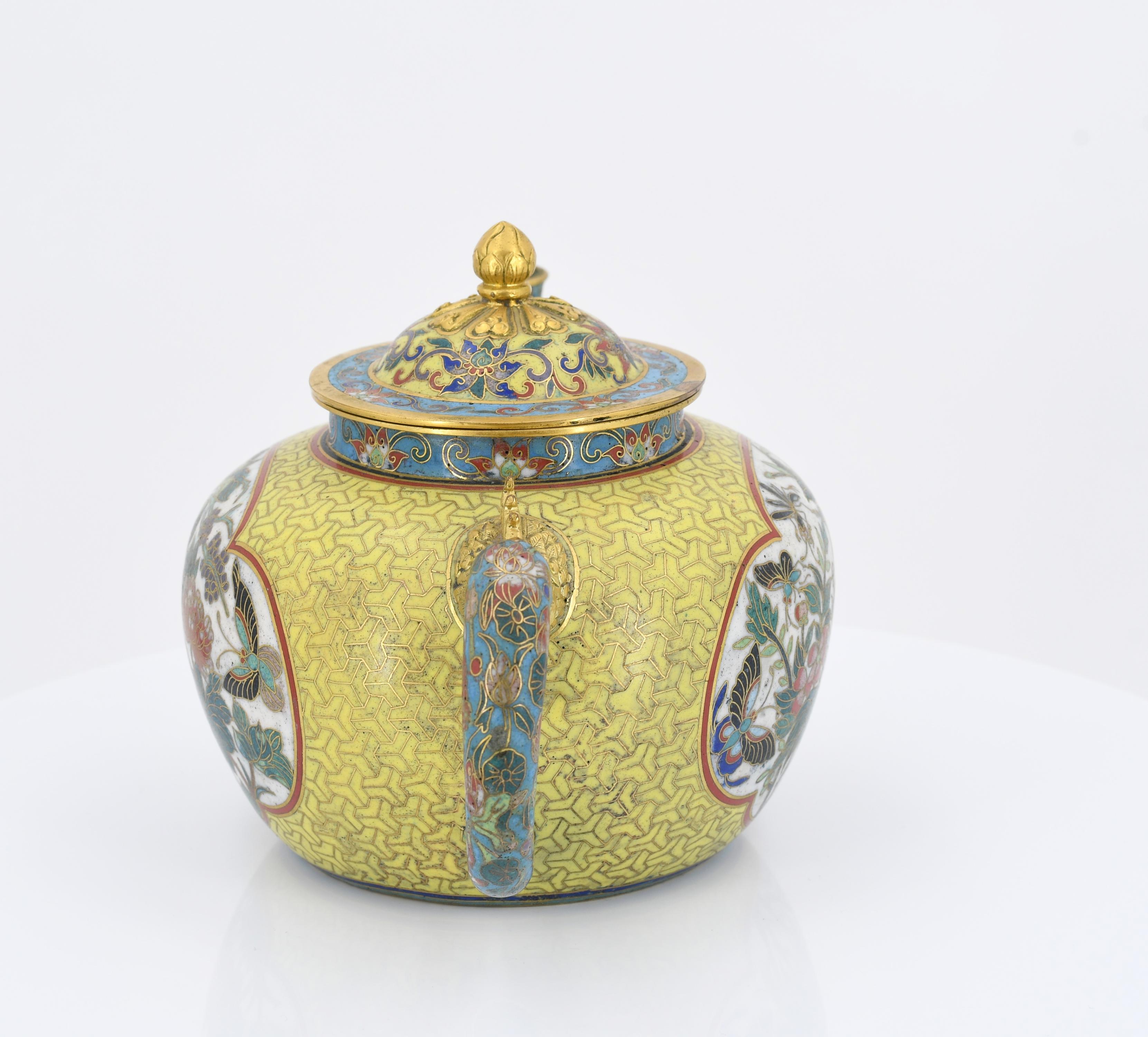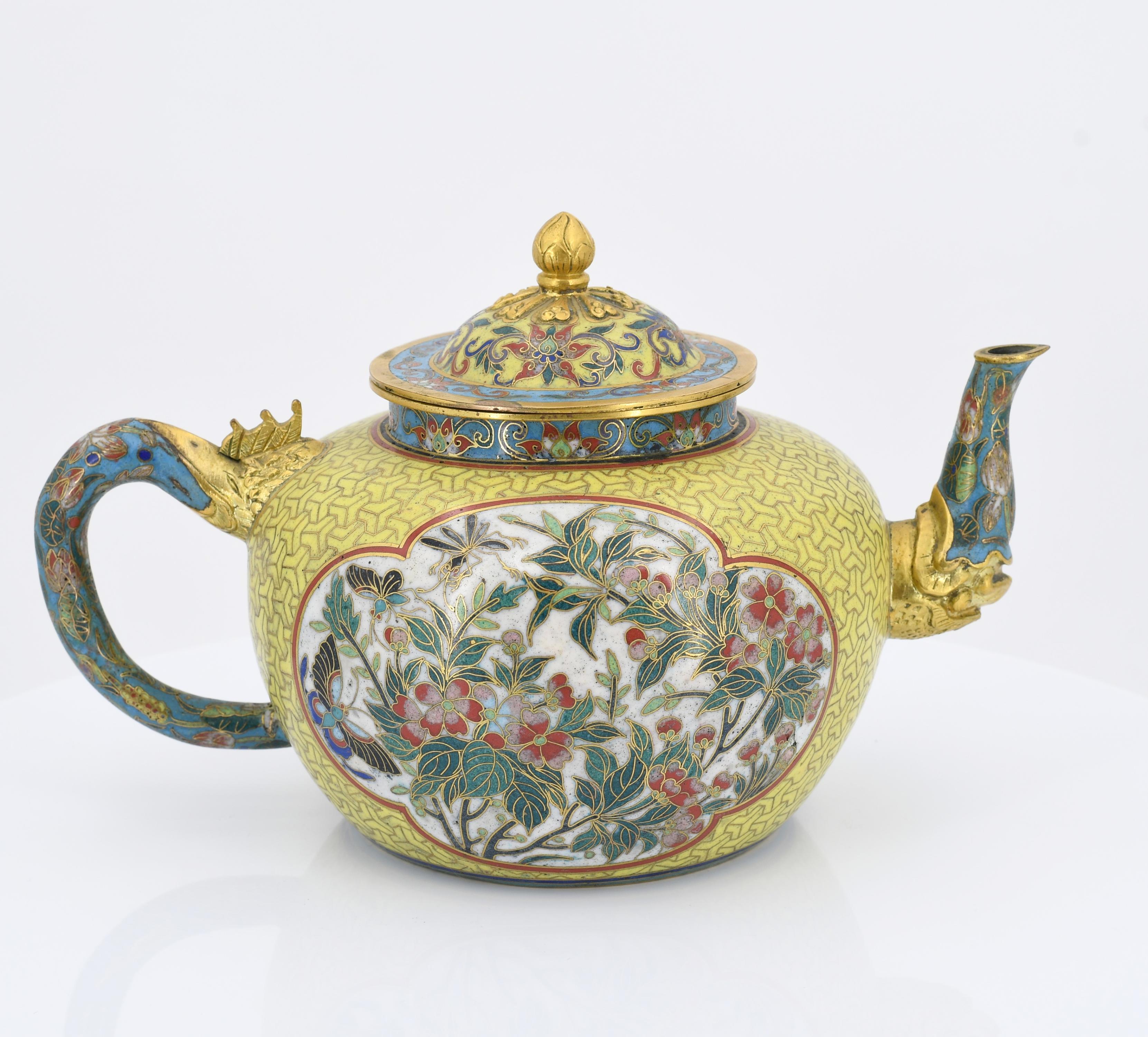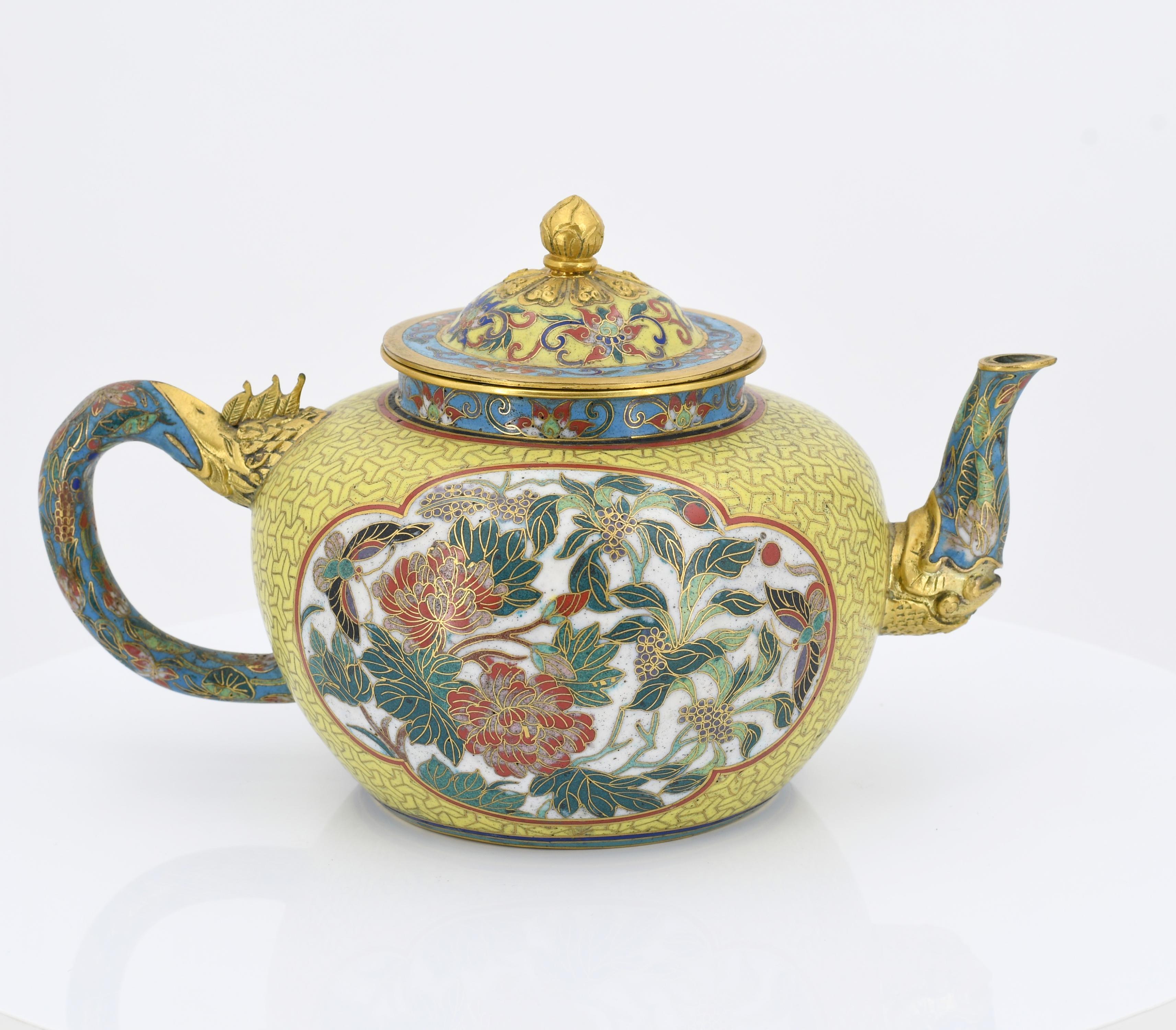 PAAR CLOISONNÉ TEEKÄNNCHEN.