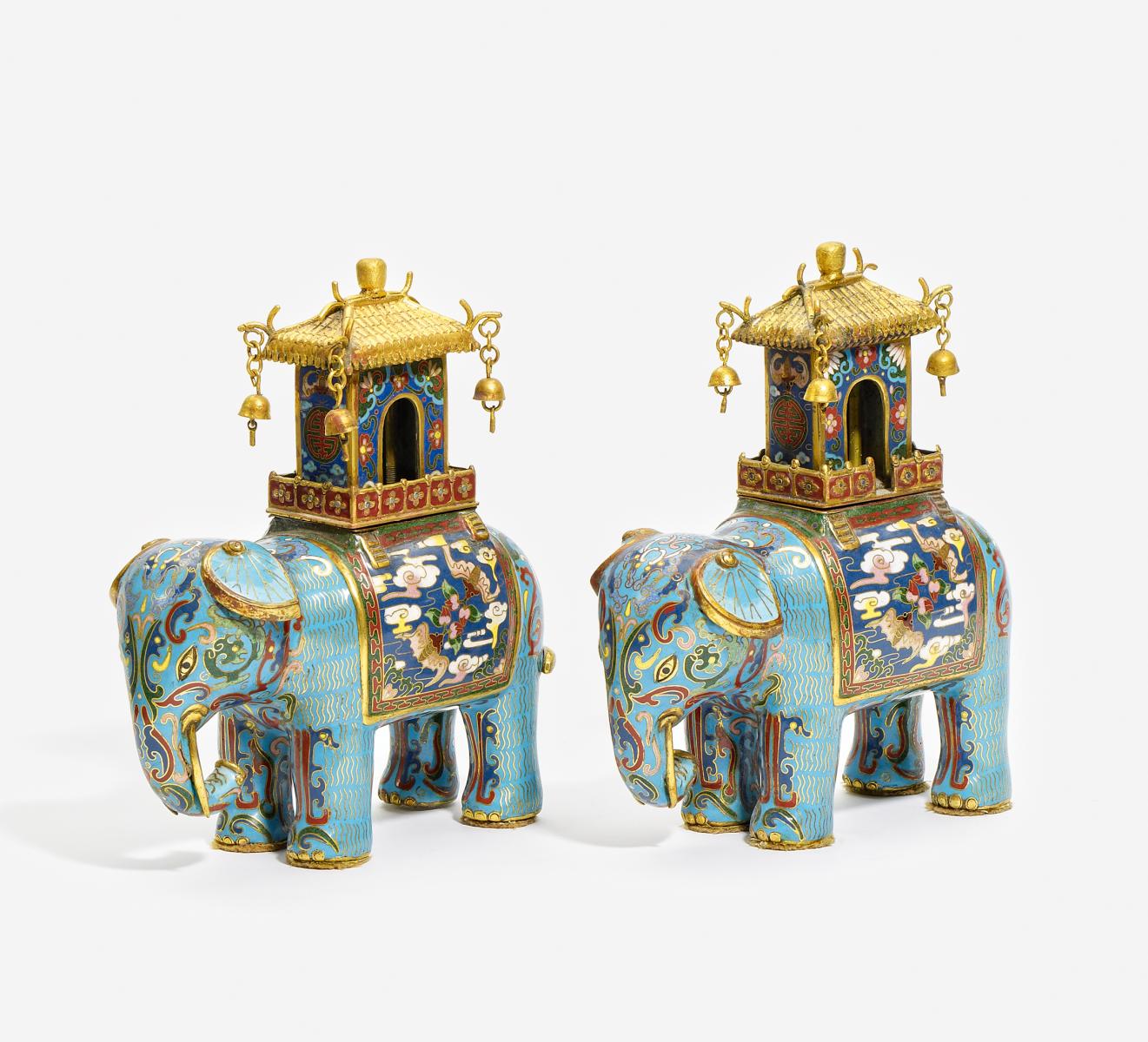 PAAR ELEFANTEN MIT PAVILLON AUF DEM SATTEL.