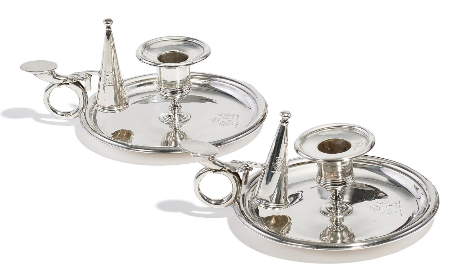 PAAR GEORGE IV HANDLEUCHTER MIT LÖSCHHÜTCHEN.