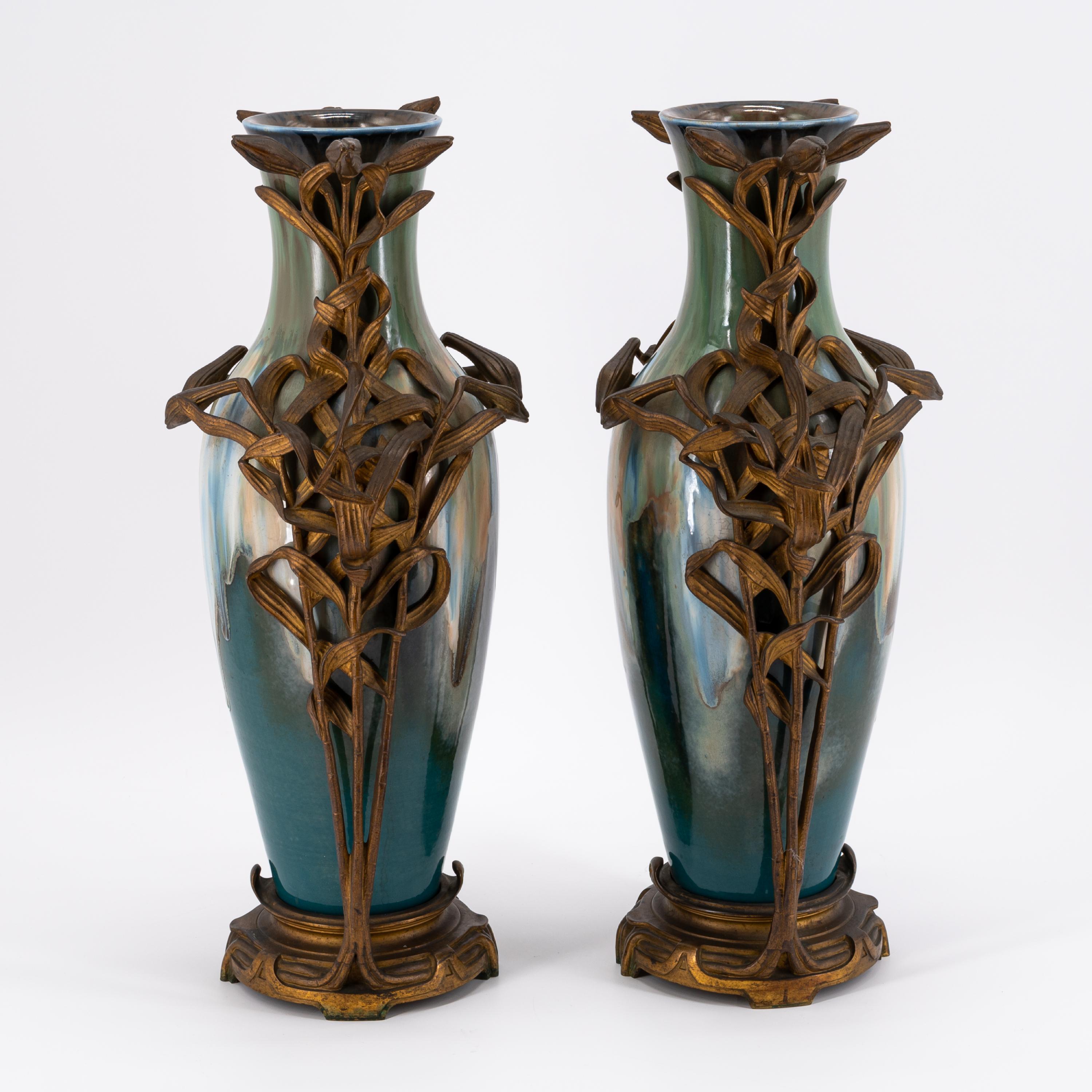 PAAR GROßE VASEN MIT AUßERGEWÖHNLICHER JUGENDSTIL-MONTIERUNG.