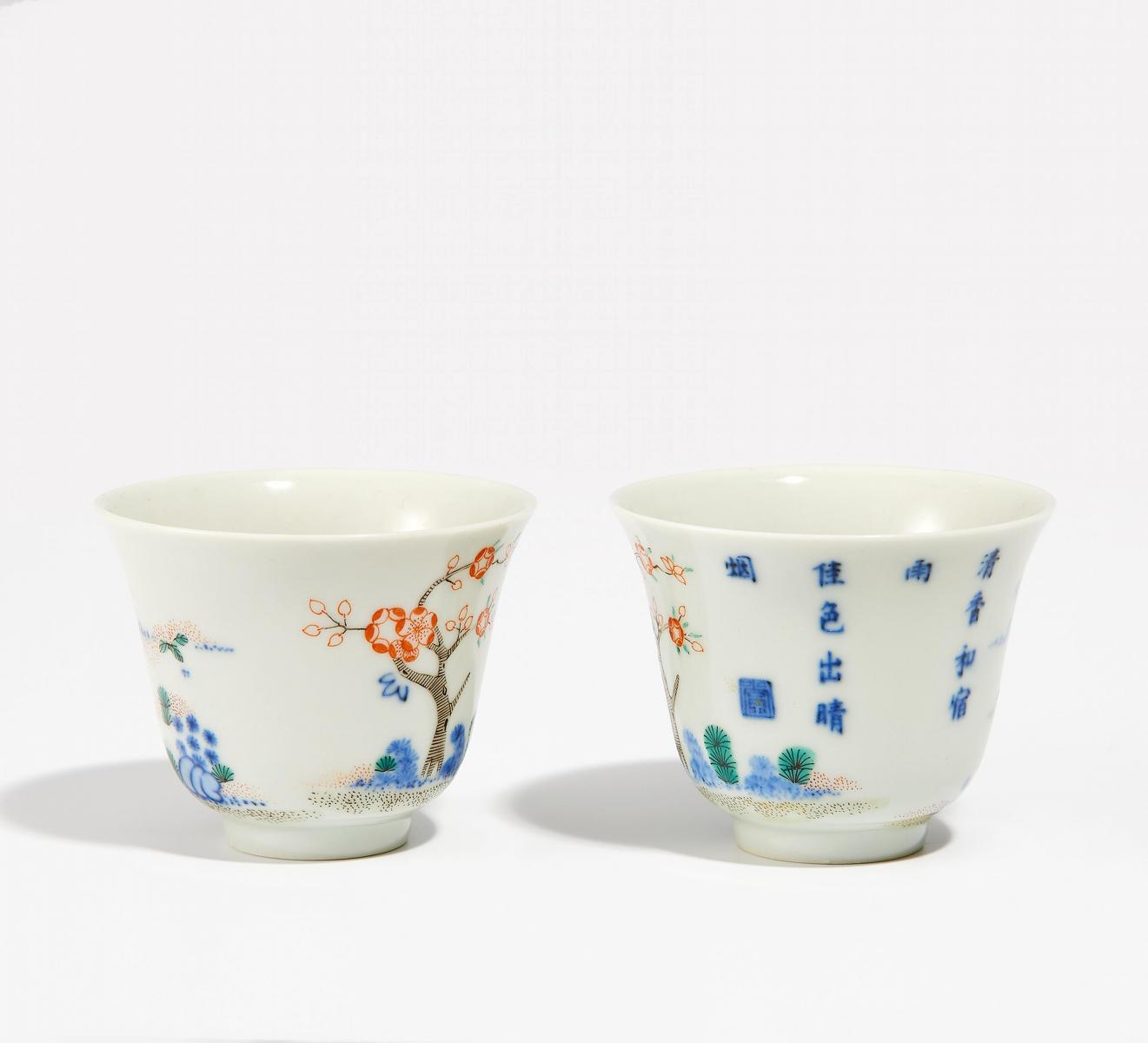 Technik: Porzellan, bemalt mit Unterglasurblau und Aufglasurfarben.
