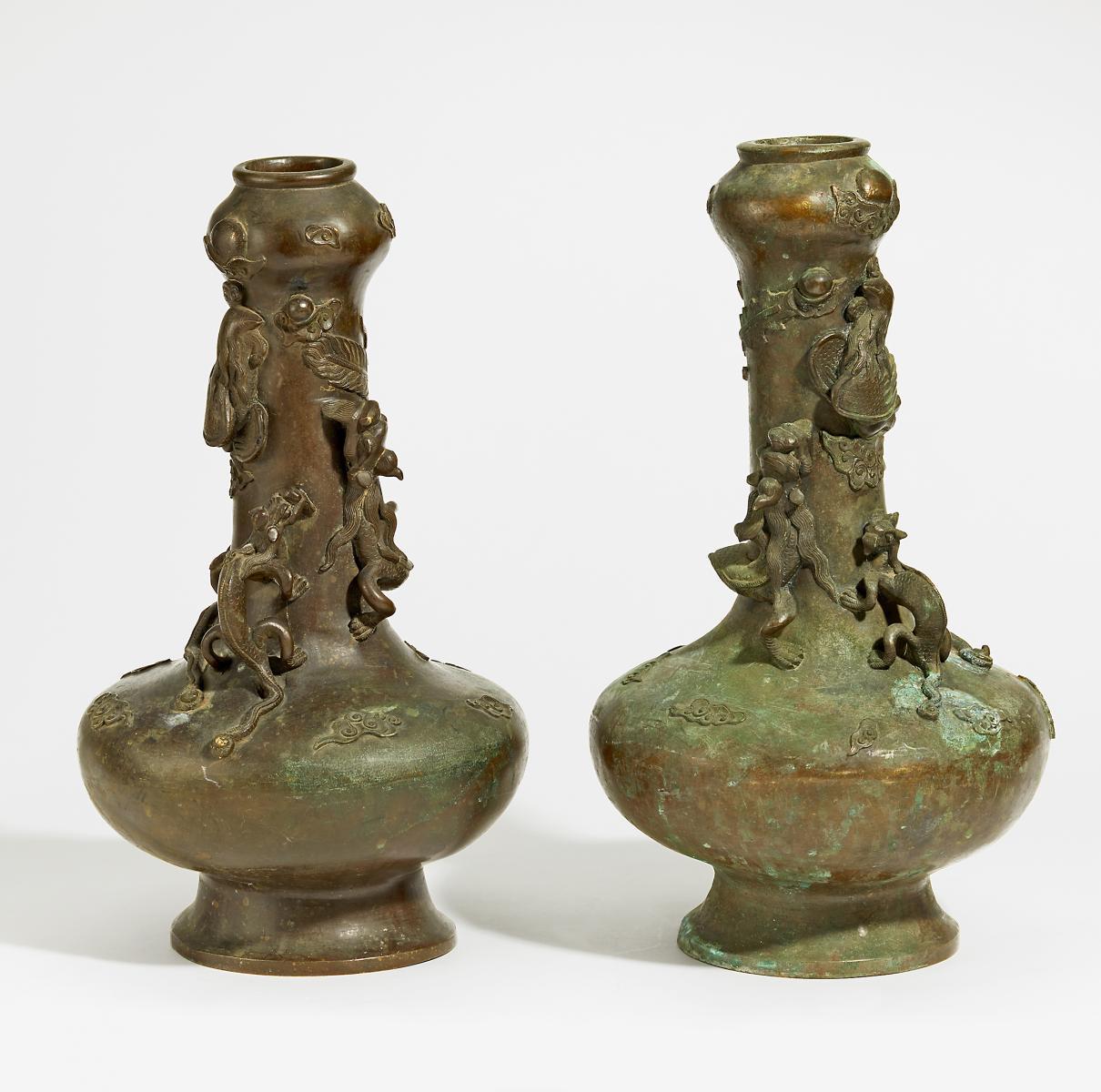 Paar Knoblauch-Vasen mit Drachen und Phönixen.