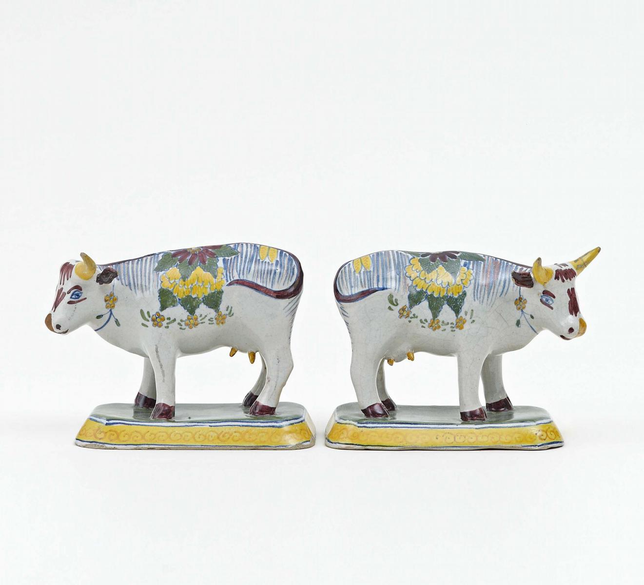 Sandfarbener Scherben mit weißer Glasur und farbigem Dekor. H.10,5 cm, L.14 cm.