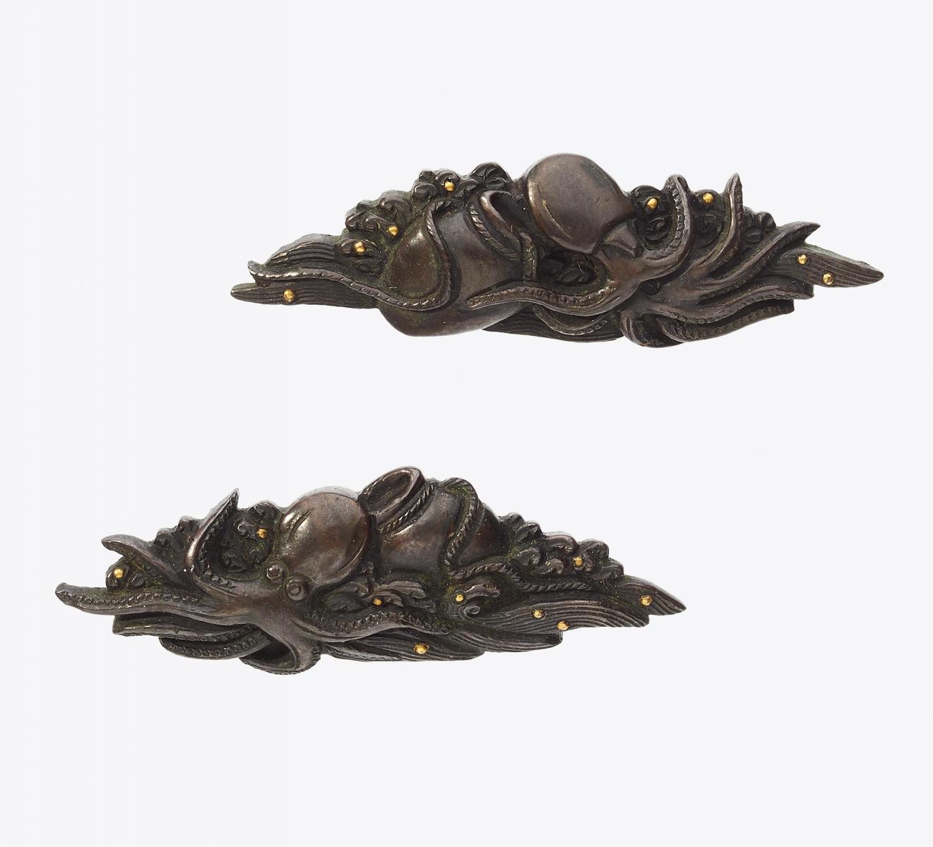 Material: Shakudô, sehr fein getrieben und ziseliert.