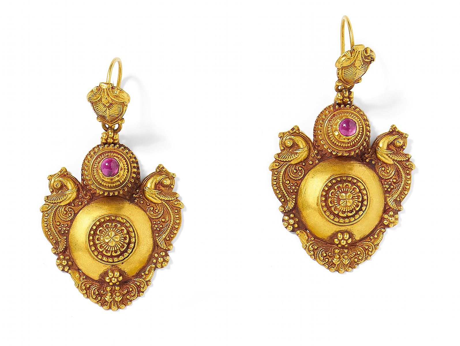 Technik: Ca. 750er Gold, jeweils ein Stein eingelegt.