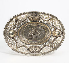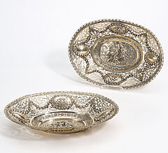 PAAR OVALE ANBIETKÖRBE MIT RELIEFIERTEN PUTTENSZENEN.
