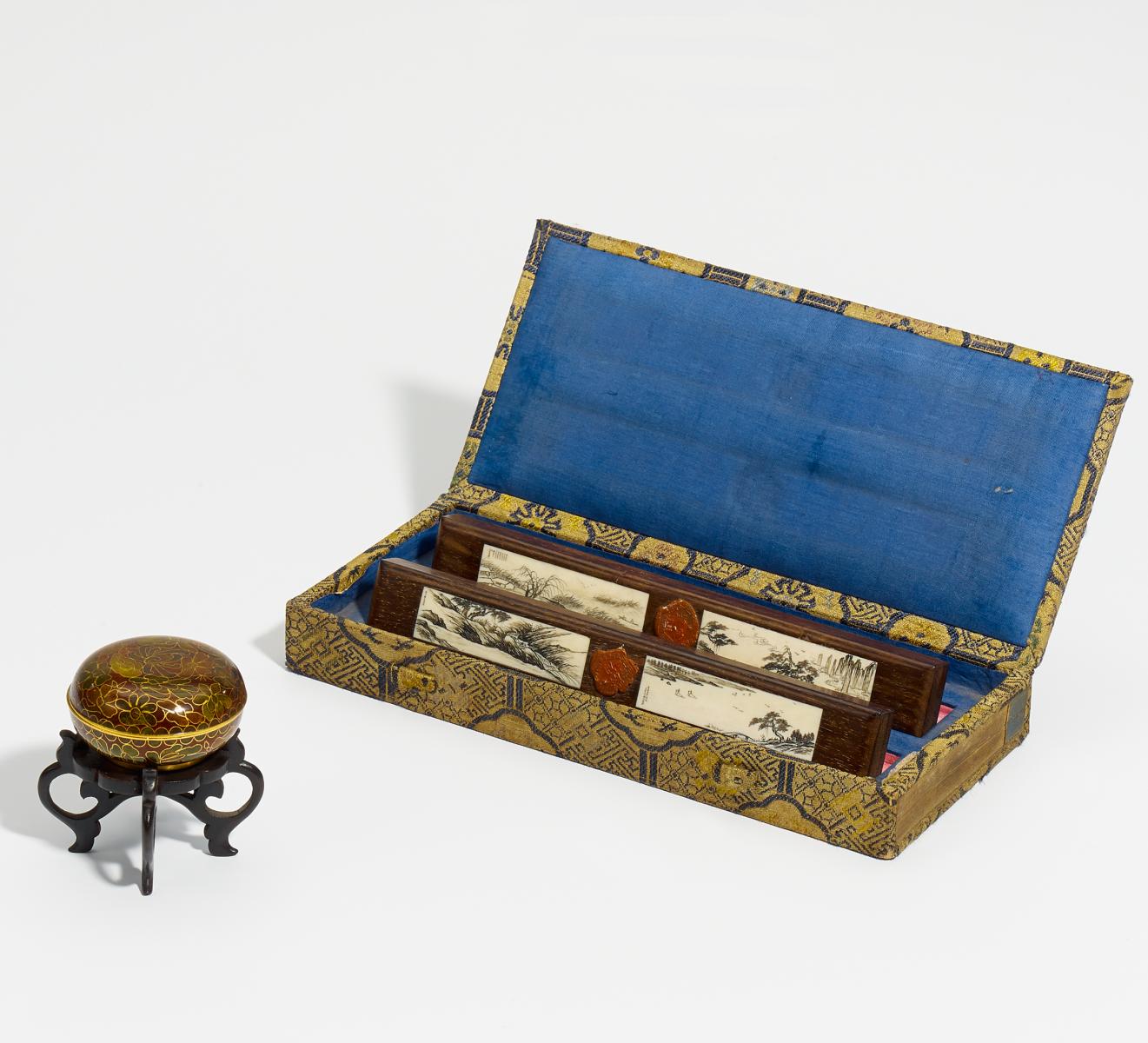 Zustand A. Beilage: Cloisonné-Dose für Siegelpaste auf Sockel. China.