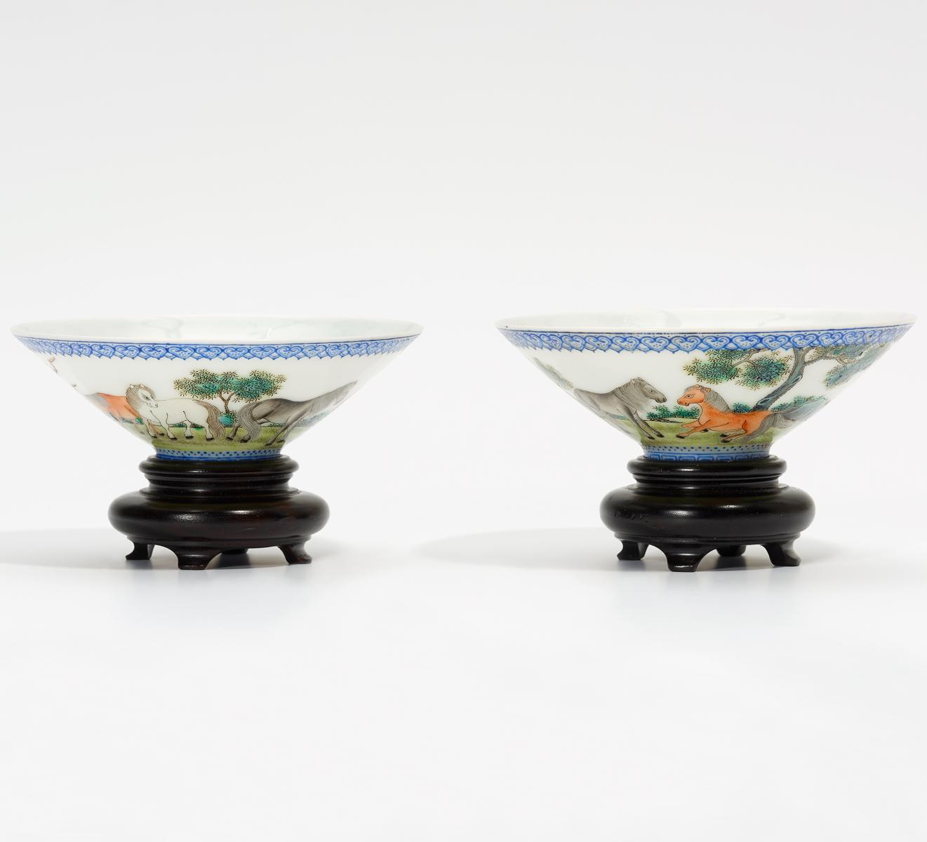 Technik: Dünnwandiges, sog. Eierschalenporzellan, fein bemalt in Guyuexuan-Aufglasurfarben.