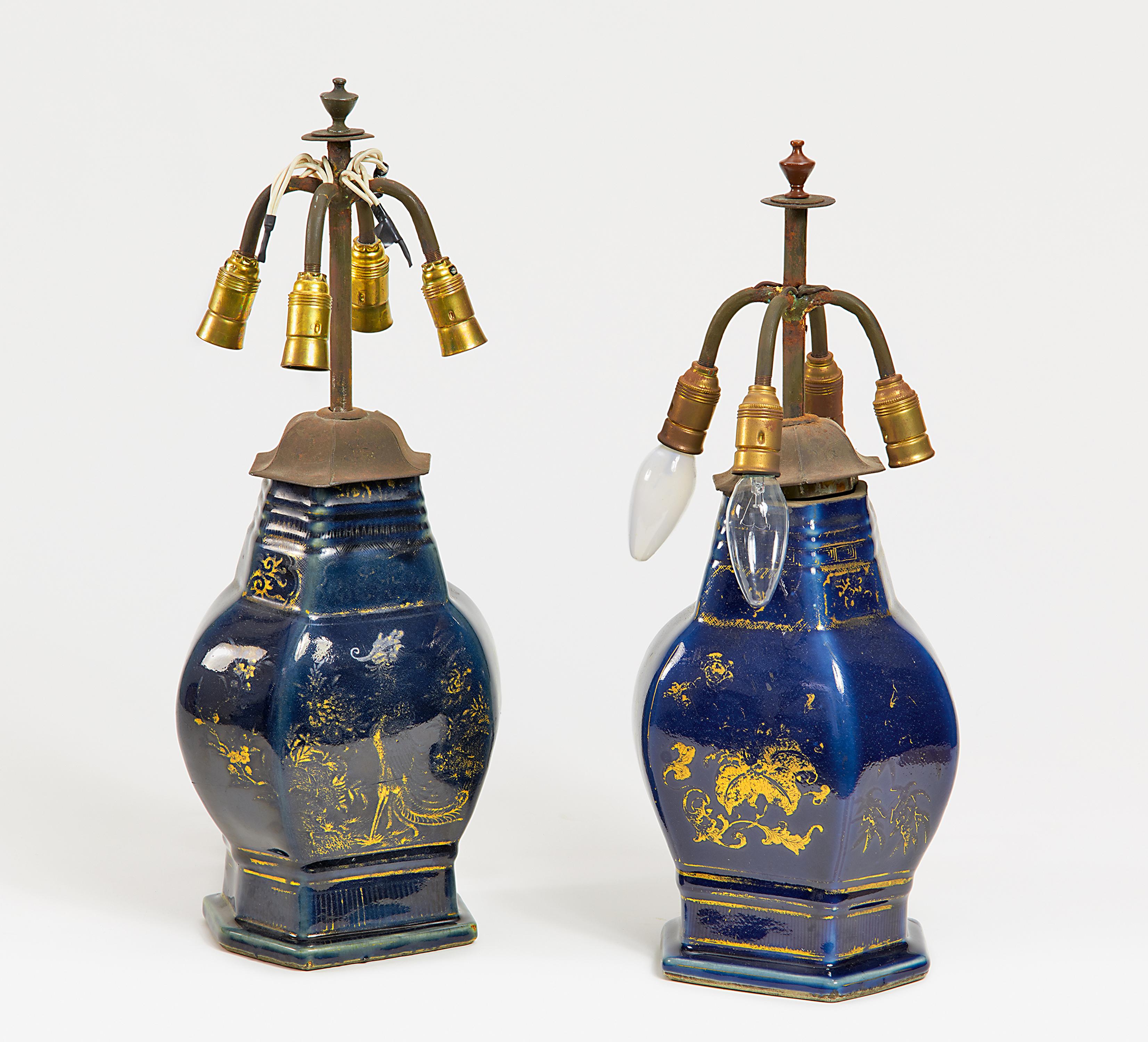 Technik: Porzellan. Dunkelblau glasiert, mit Gold bemalt.