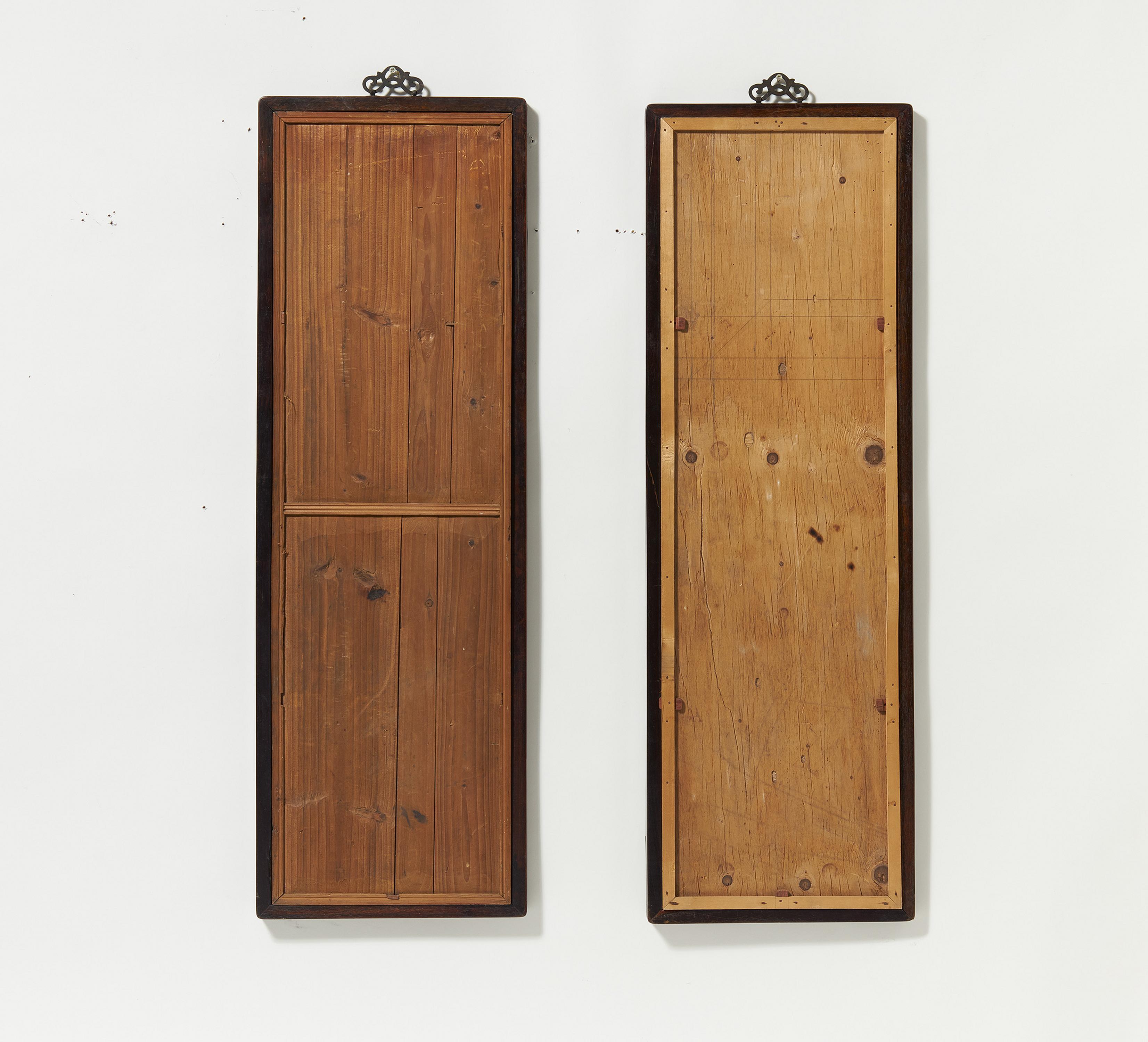 Rahmen/Sockel: Hinter Glas gerahmt. Holzrahmen aus hongmu mit Perlmutteinlagen.