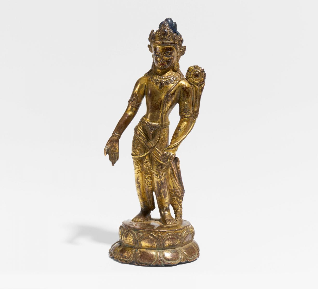 Technik: Kupferbronze mit Feuervergoldung und Resten von Pigmenten.
