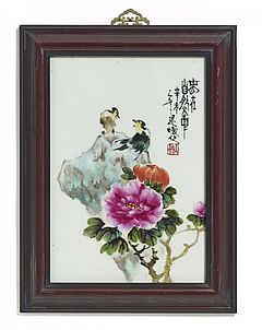 PLATTE MIT VÖGELN UND PÄONIEN.