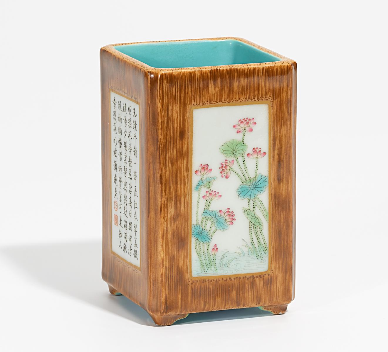 QUADRATISCHER PINSELBECHER. PORZELLAN.