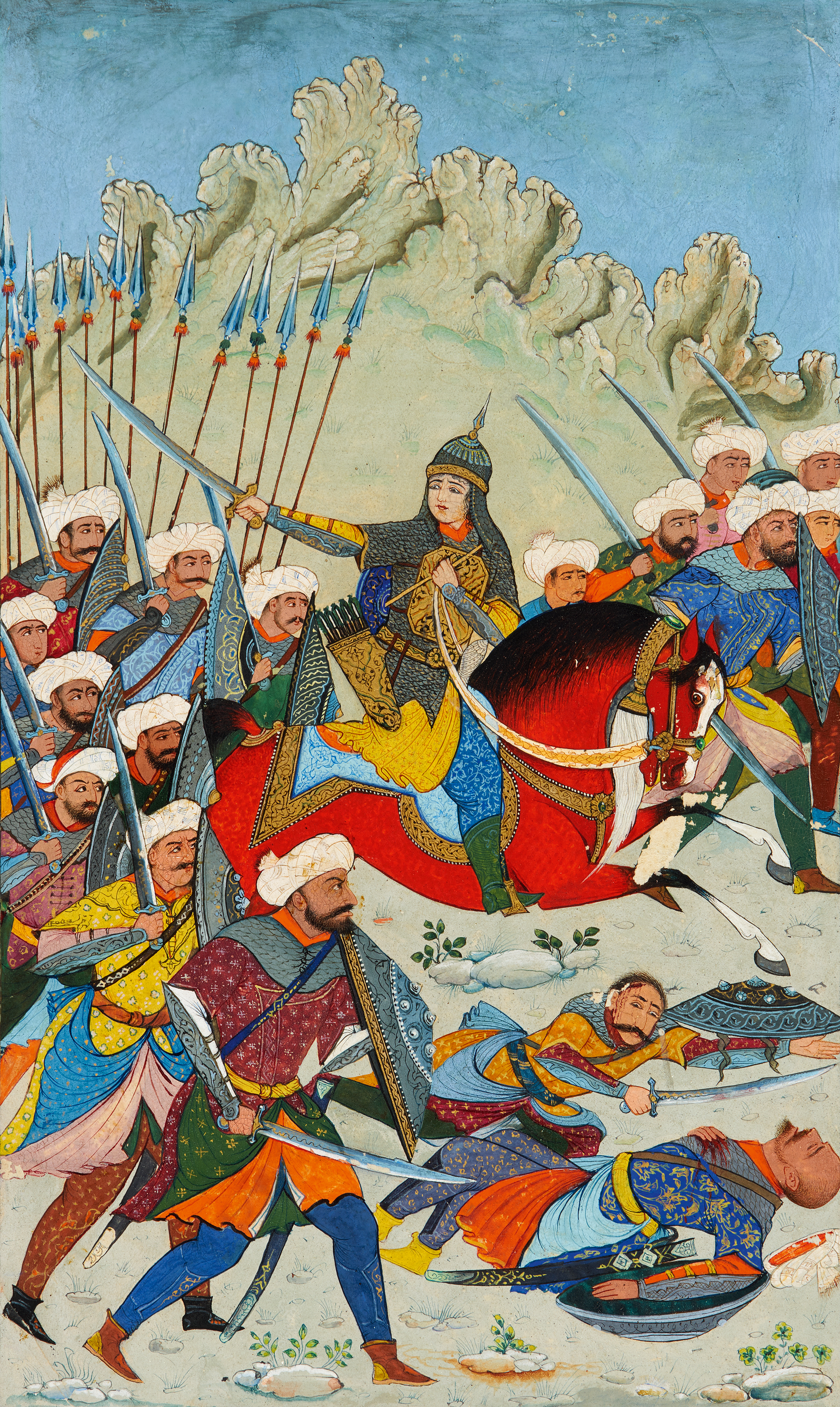 RAZIAH SULTAN IN RÜSTUNG ZU PFERDE.