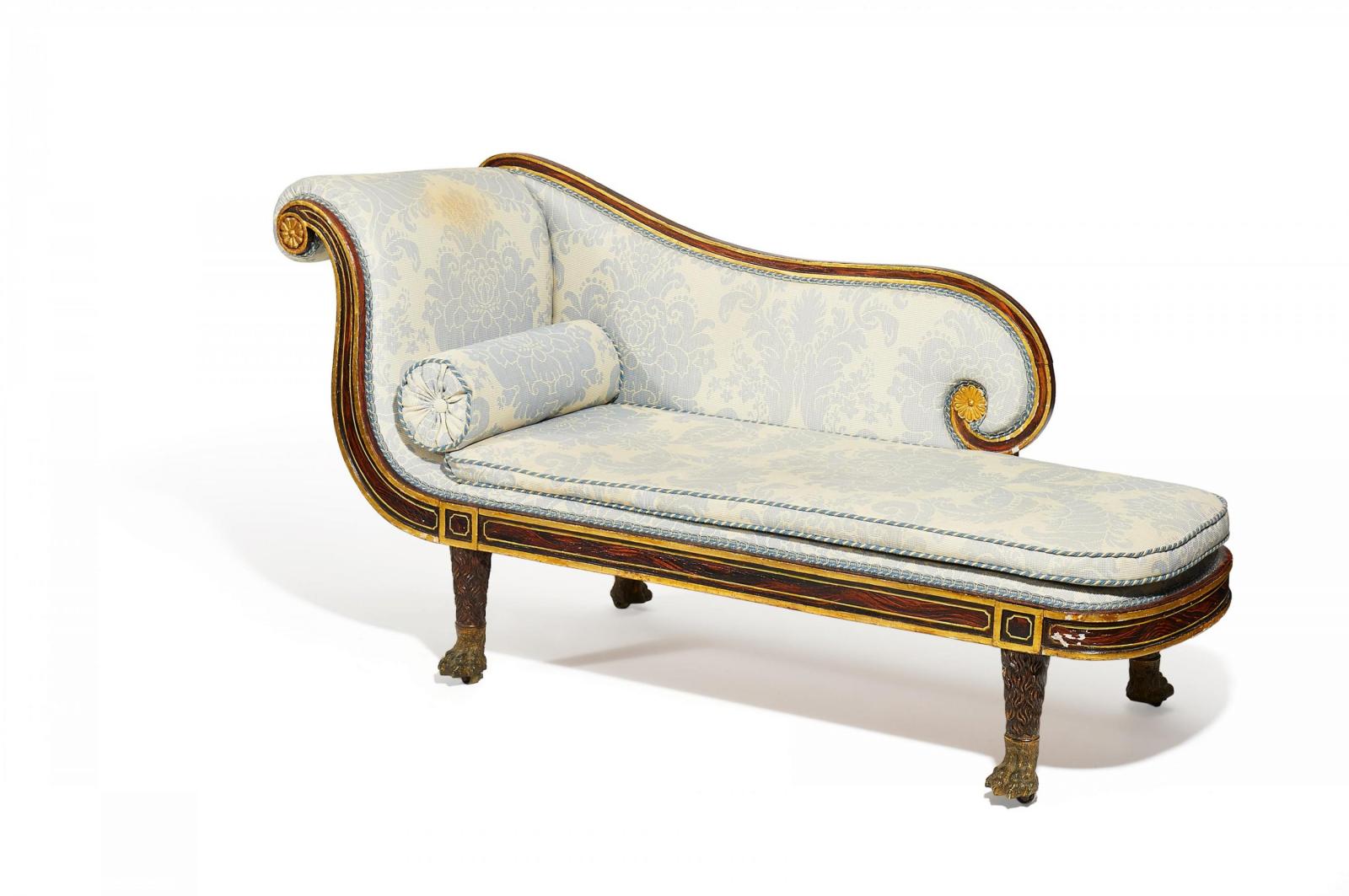 Beschreibung: Geschweiftes profilgerahmtes Gestell auf Löwentatzen mit Rollen.