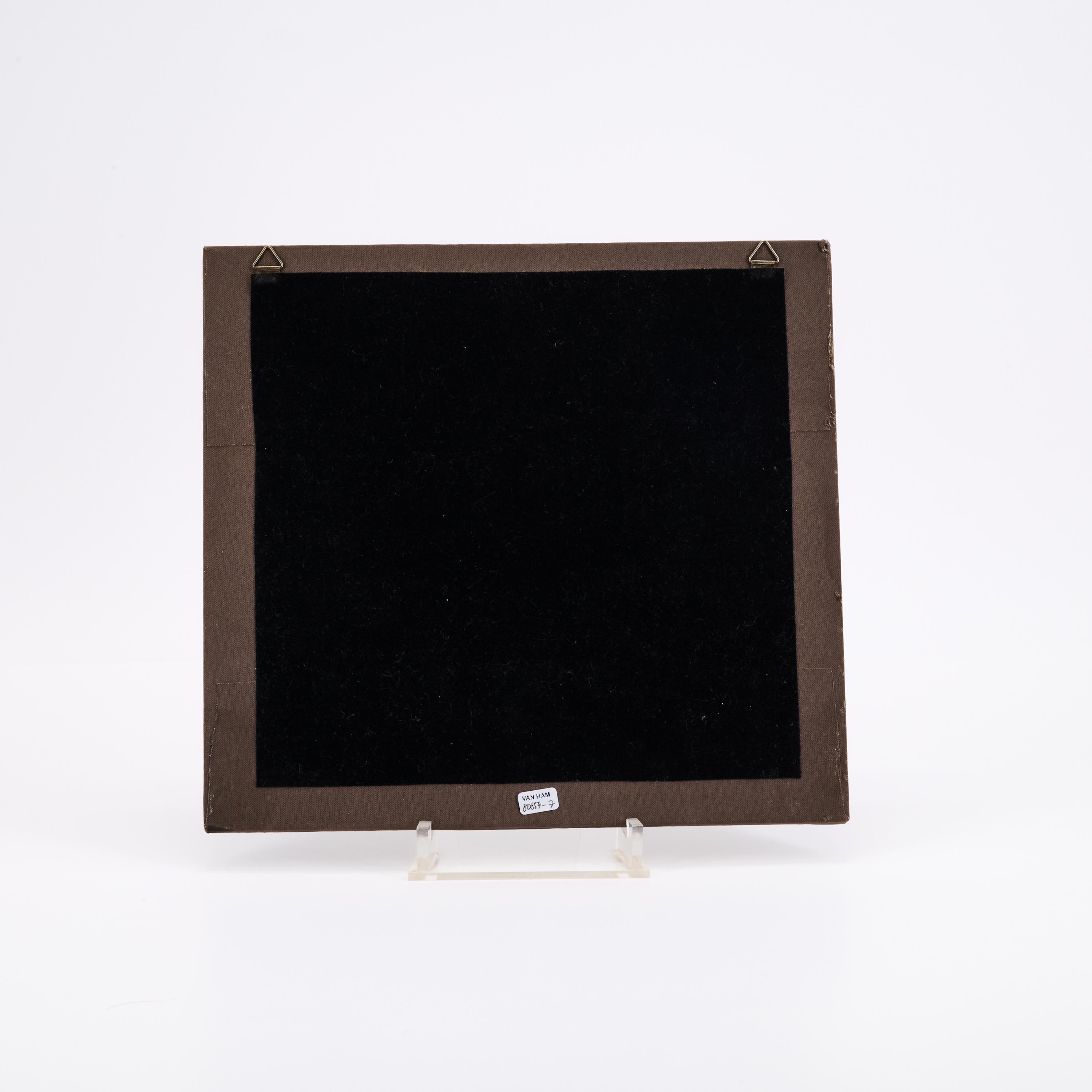 Technik: Vermutlich mehrschichtiger Steinguß o.ä. Auf stoffbezogene Holzplatte montiert.
