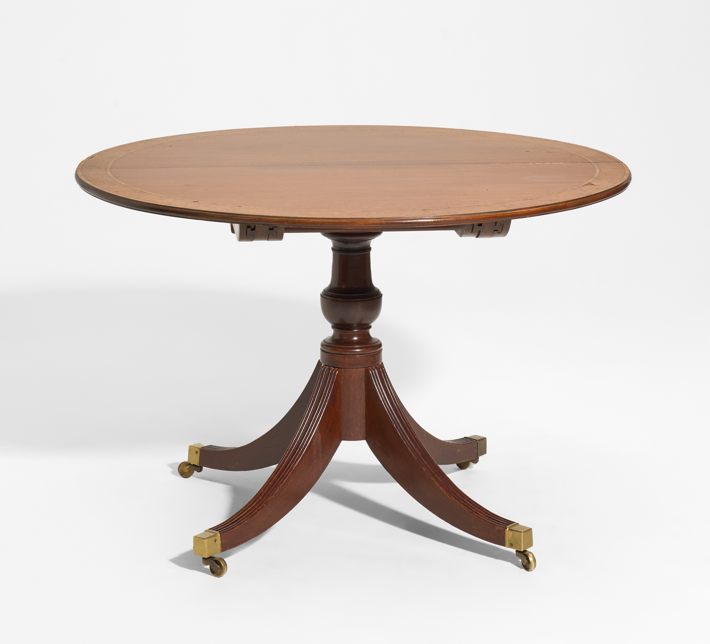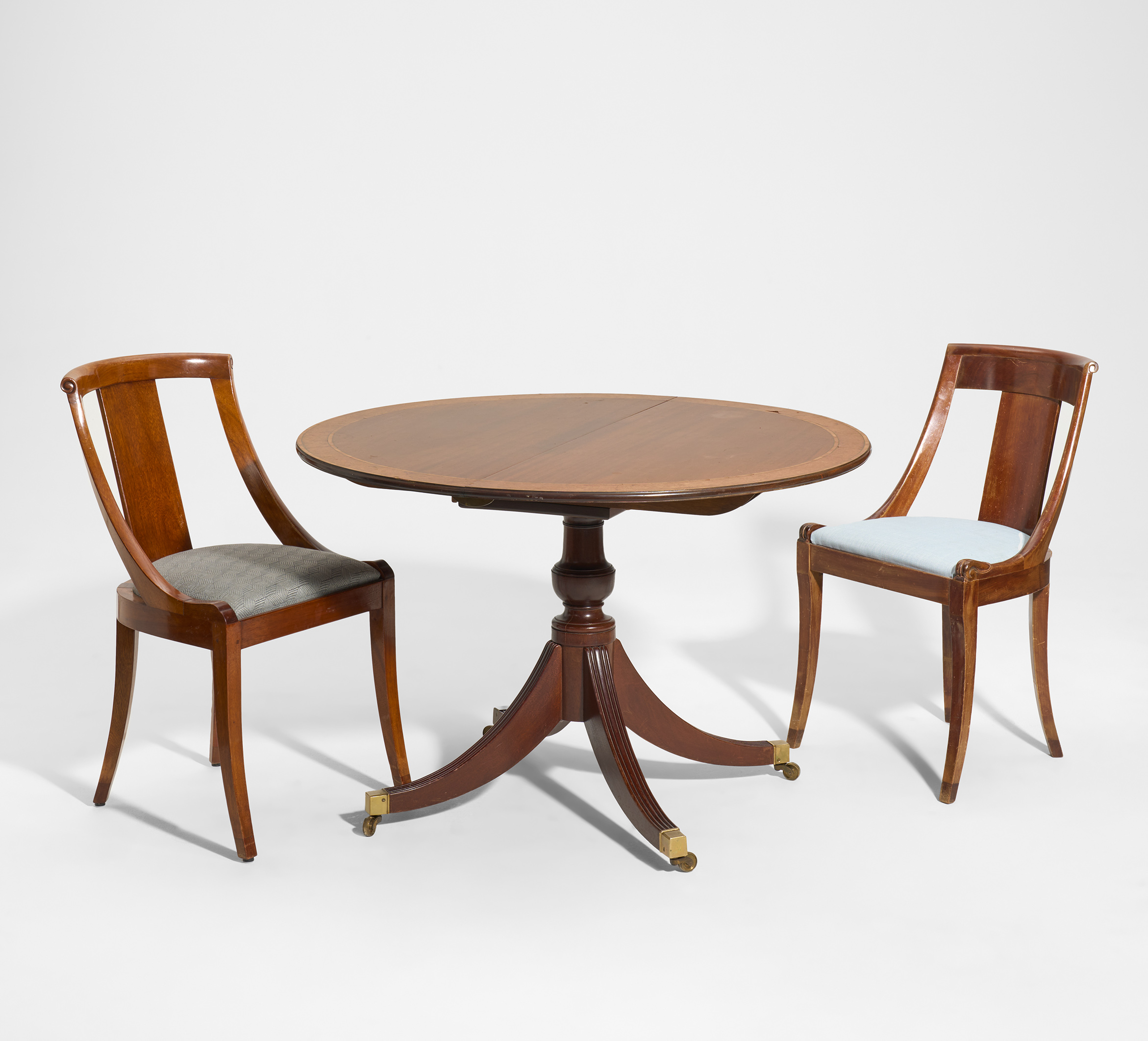 RUNDER TISCH UND FOLGE VON SECHS GONDELSTÜHLEN.