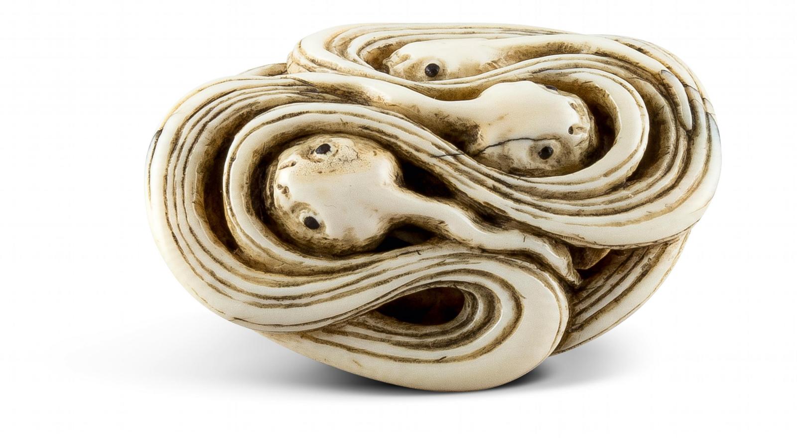 RYUSA-NETSUKE: DREI KAULQUAPPEN.