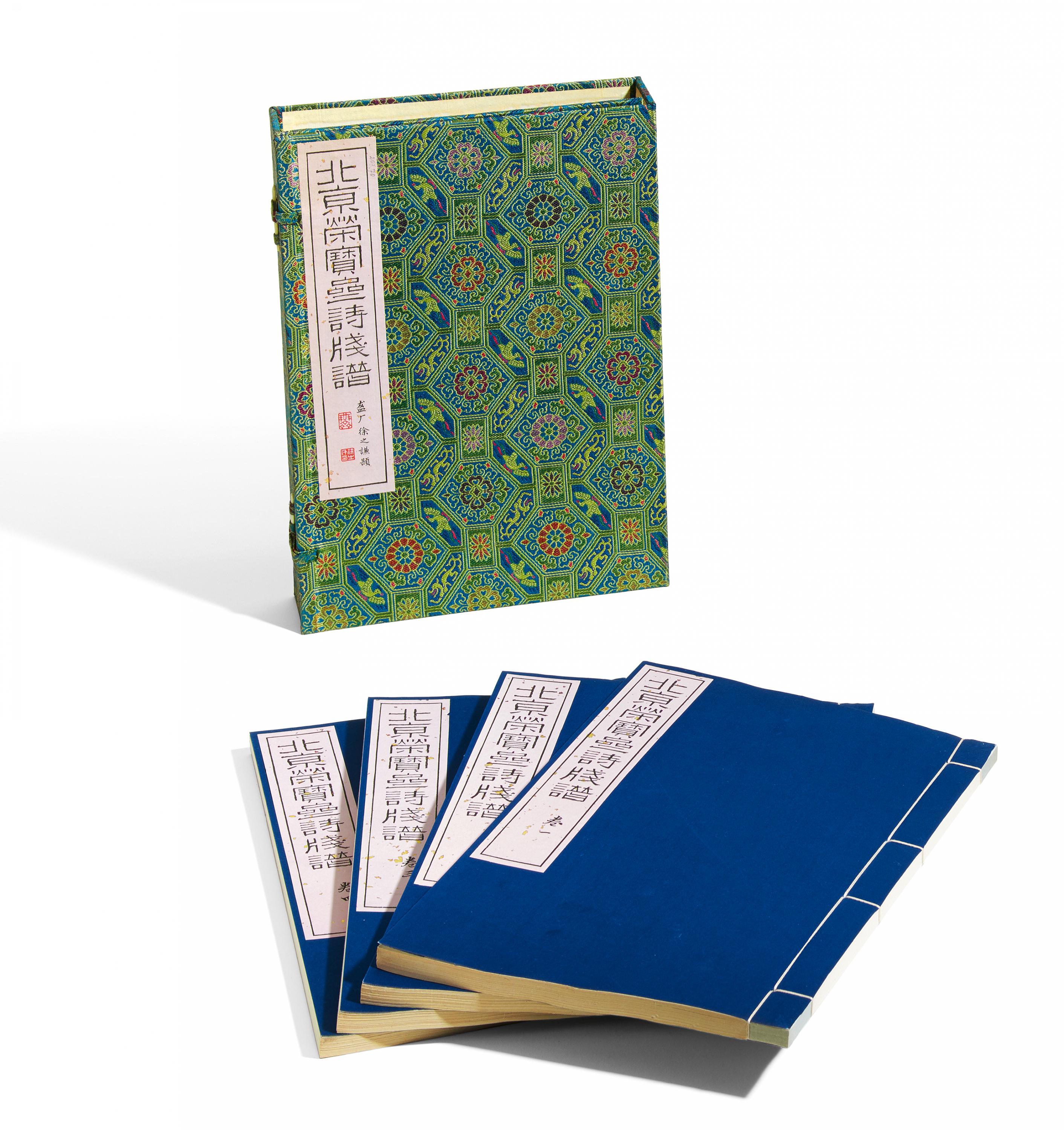 Technik: Album mit vier Bänden, mit insg. 160 Farbholzschnitten. Originalkassette bespannt mit Seidenbrokat.