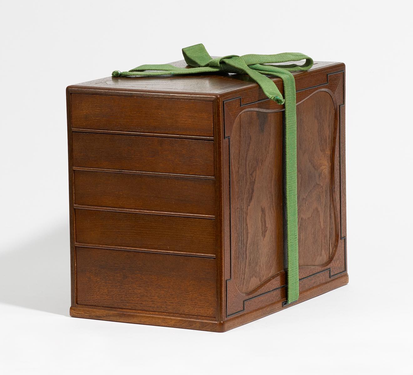 Beschreibung: Mit vier schmalen und einer hohen Schublade. Die vier schmalen Schubladen haben je eine
