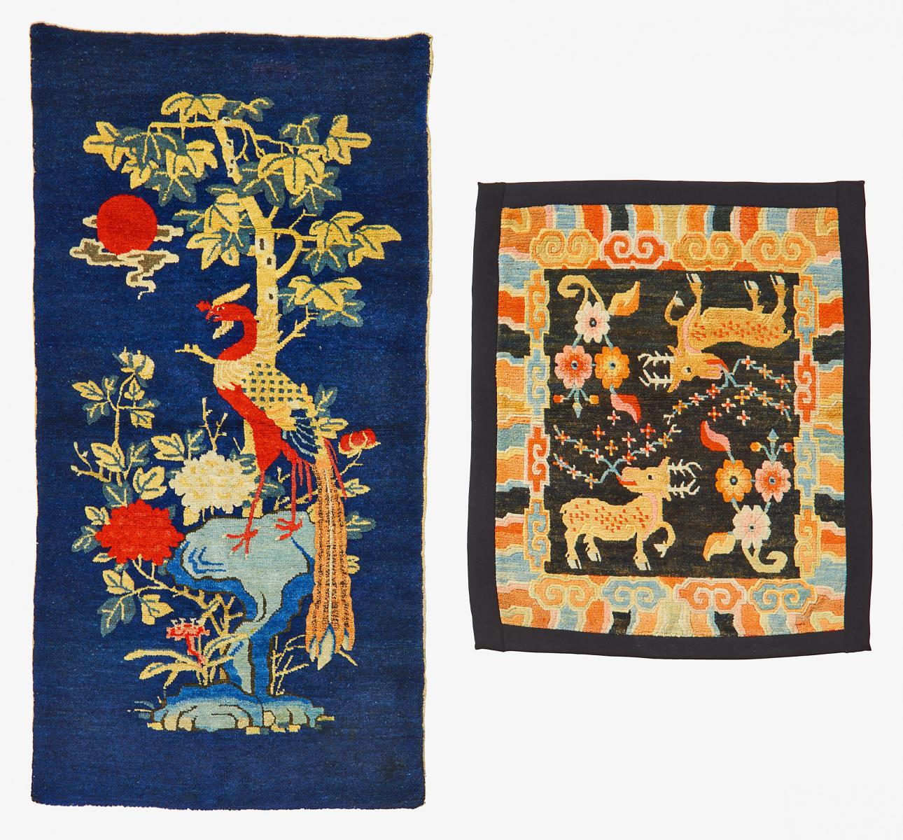 Zustand A/B. Beilage: Paotou-Teppich mit fenghuang-Vogel mit Päonien unter Wutung-Baum. China. 19./20. Jh. 134x68cm. Zustand A/B.