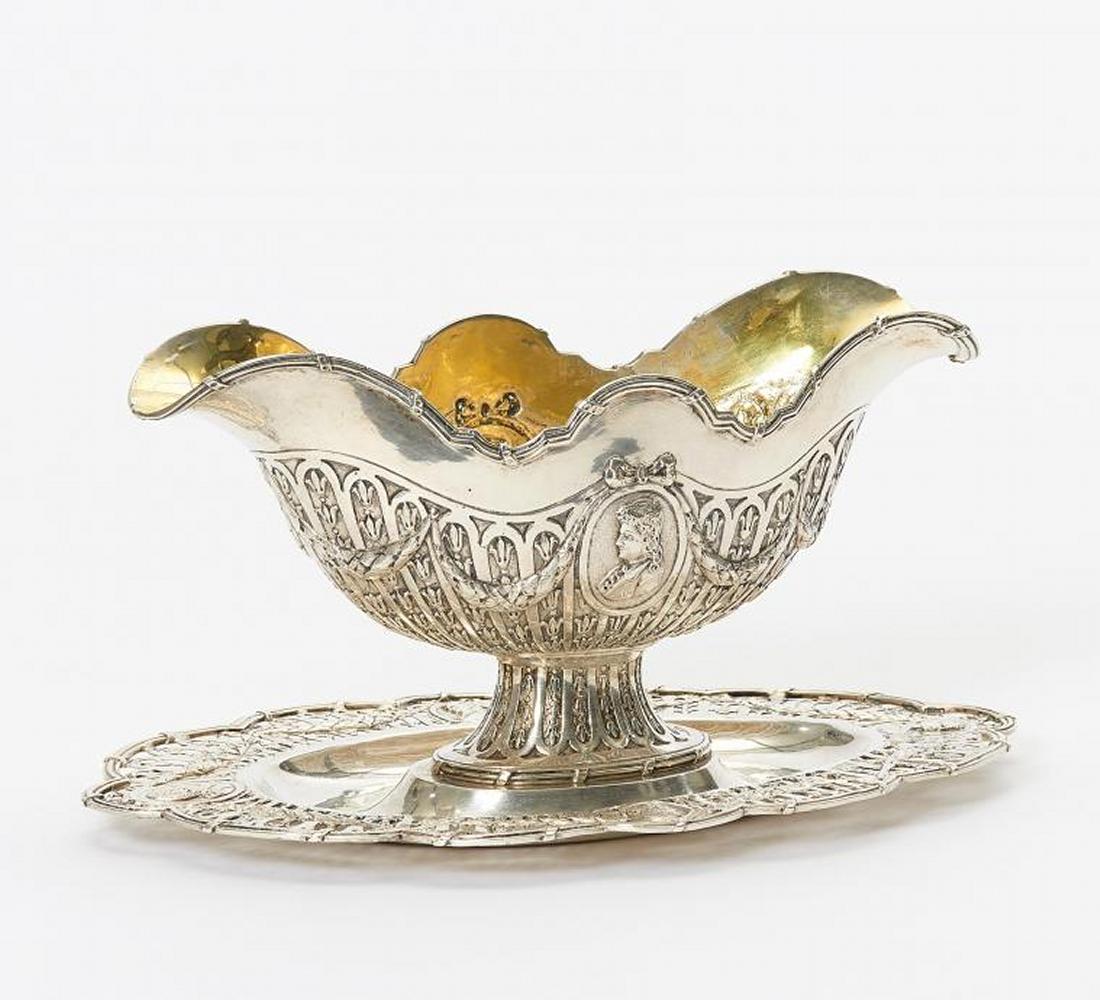 SAUCIERE MIT PORTRÄTS UND GIRLANDENDEKOR.