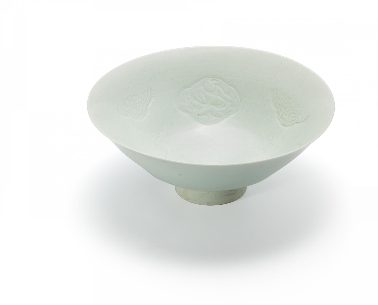 Technik: Dünn getöpfertes Porzellan mit qingbai-Glasur in hellem Entenei-Blau. Innerhalb des Fußrings ein unglasierter Kreis.