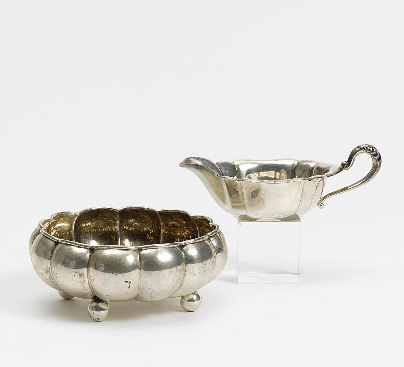 Maße: Sauciere 6x16x9,5cm, Schale H.6,5cm, ø 14cm.