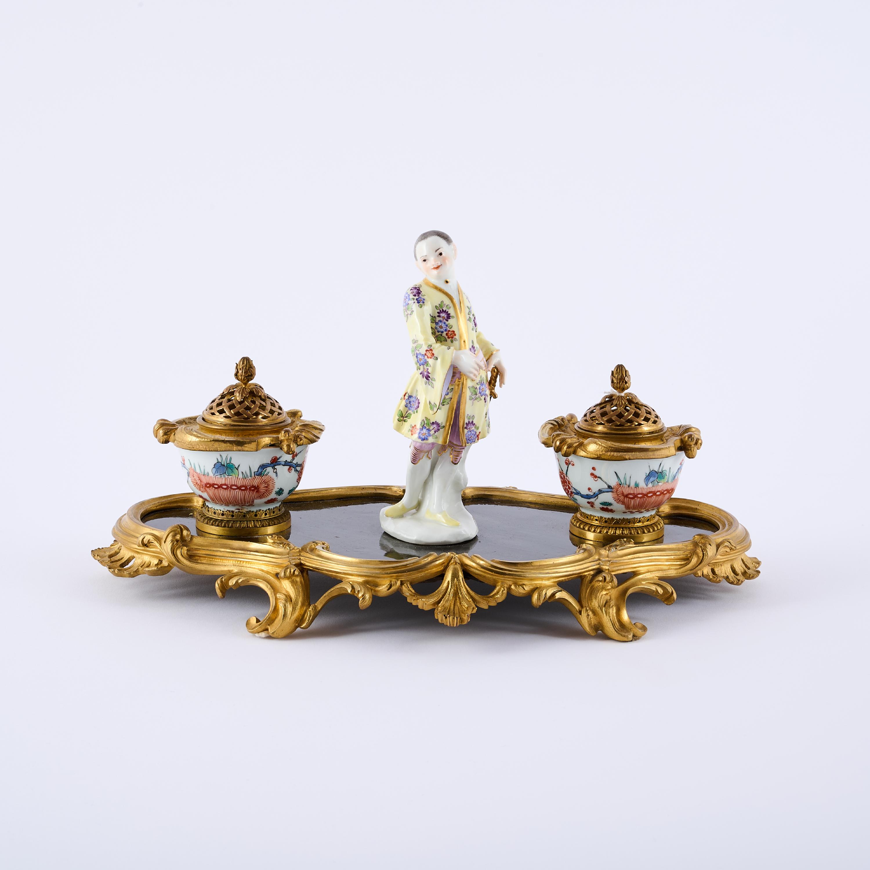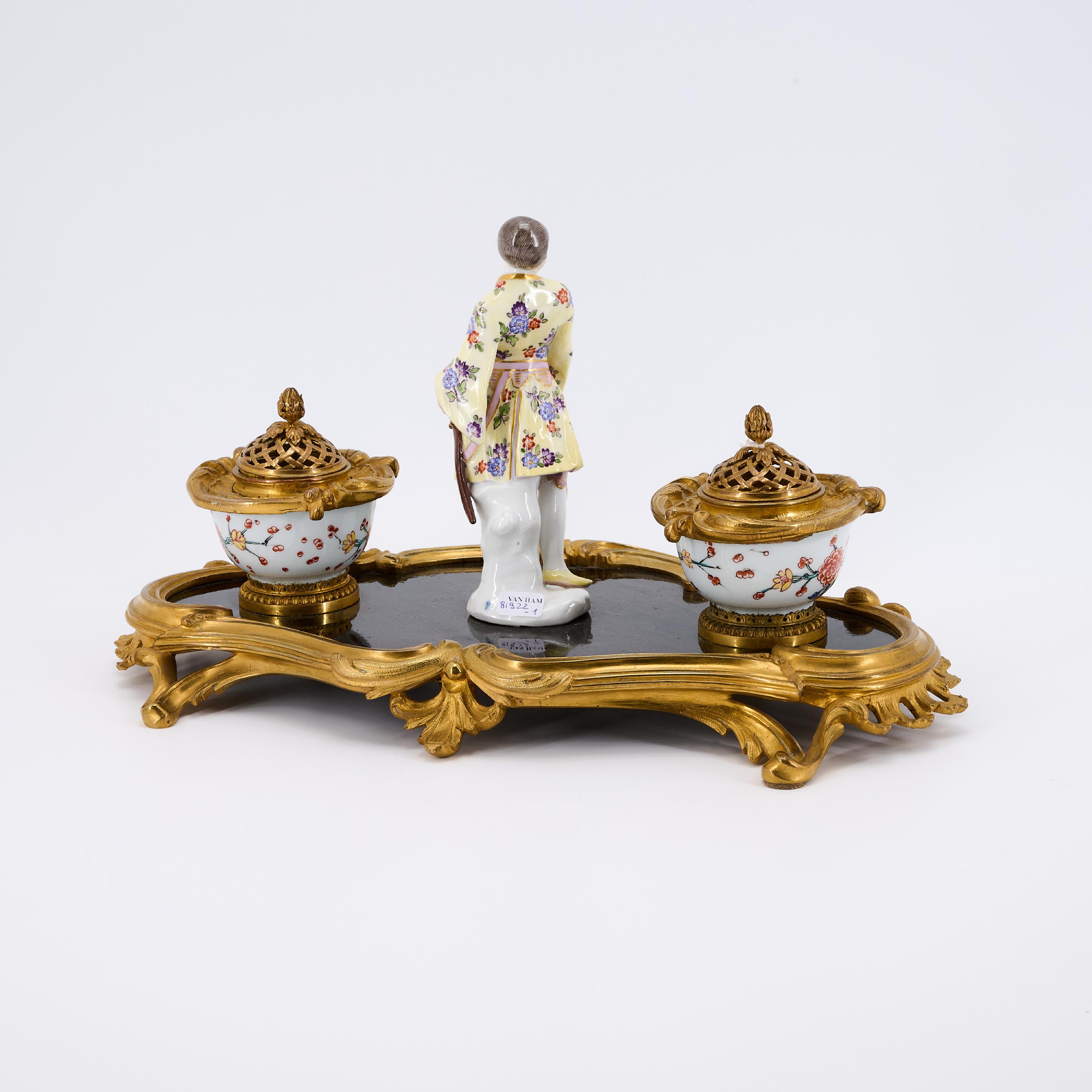SCHREIBGARNITUR MIT MEISSENER FIGUR EINES CHINESEN