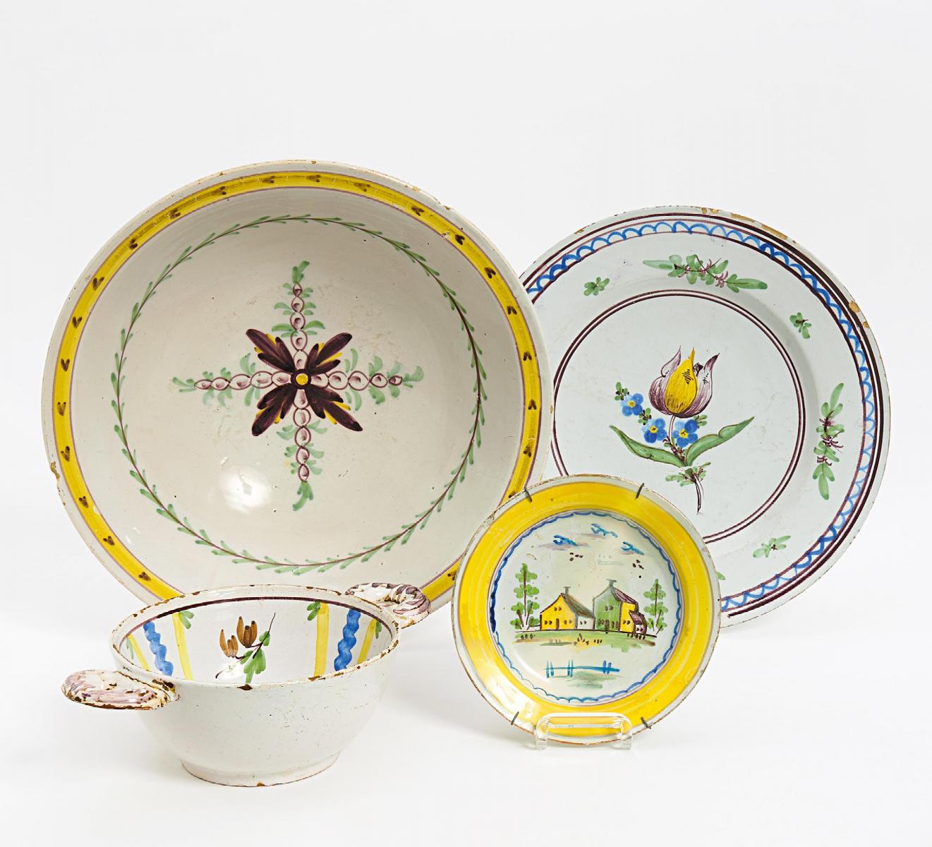 Kellinghusen. Technik: Sandfarbener Scherben, weiße Glasur, farbiges Dekor.