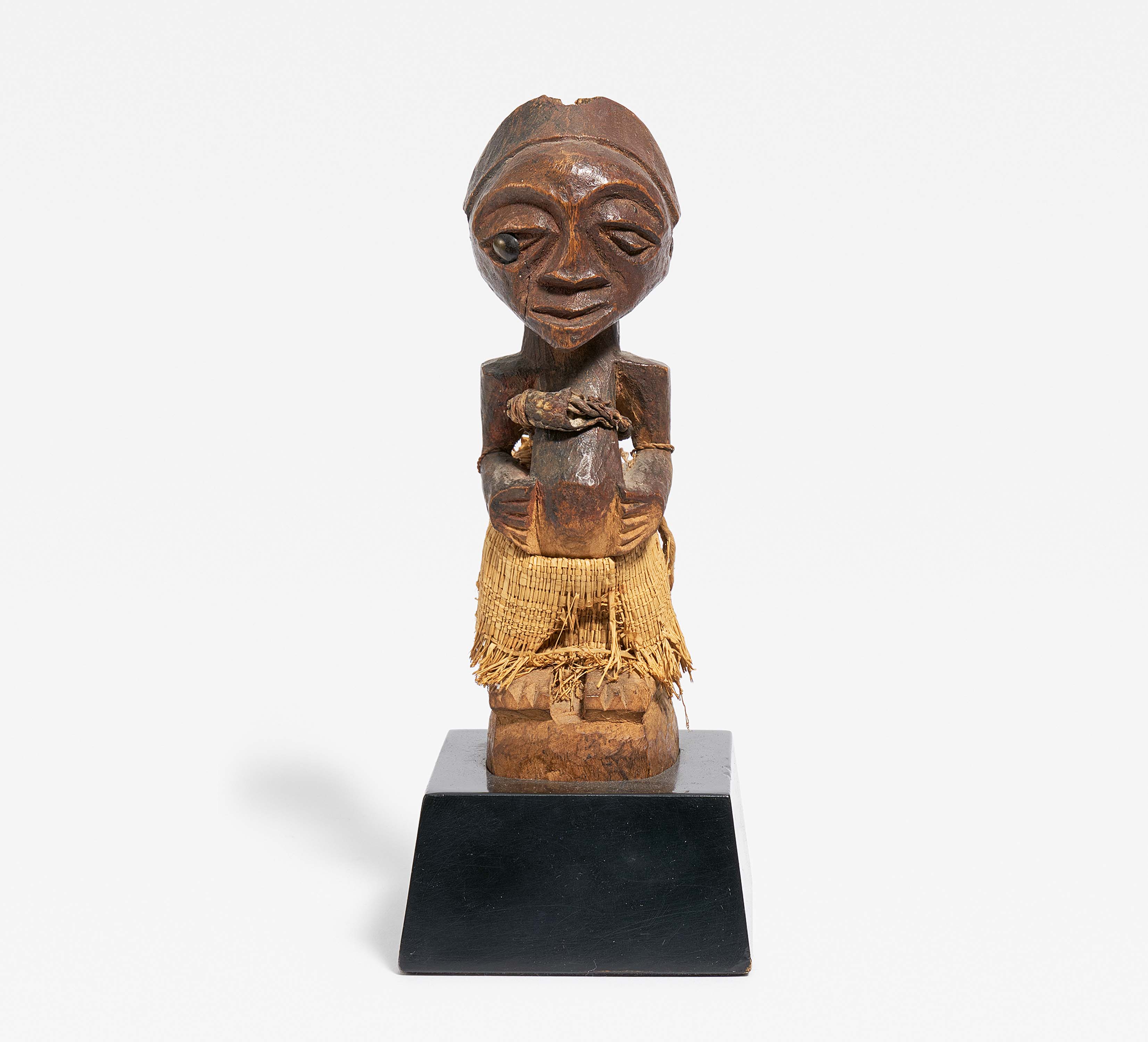 Während die großen "mankisi" genannten Figuren dieser Art den Schutz eines ganzen Dorfes gewährleisteten, ist dies ein kleineres Exemplar, das einen einzelnen Besitzer oder eine Familie vor allem Bösen bewahren sollte. Um den Leib geschnürtes Material sollte ebenso wie das erhaltene Auge aus einem Polsternagel die