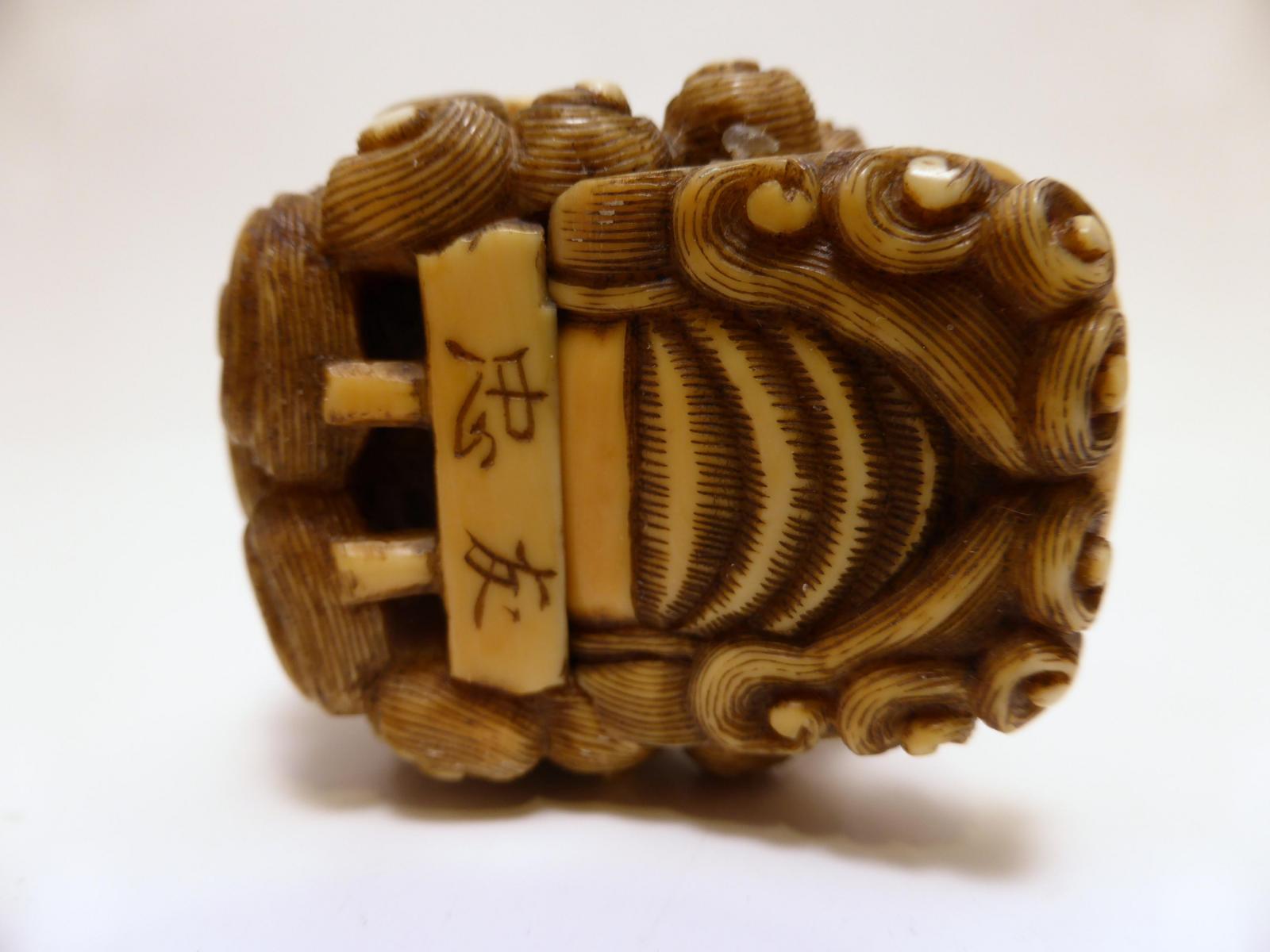 Beschreibung: Hierbei handelt es sich um ein gut geschnitztes, graviertes und dunkel akzentuiertes