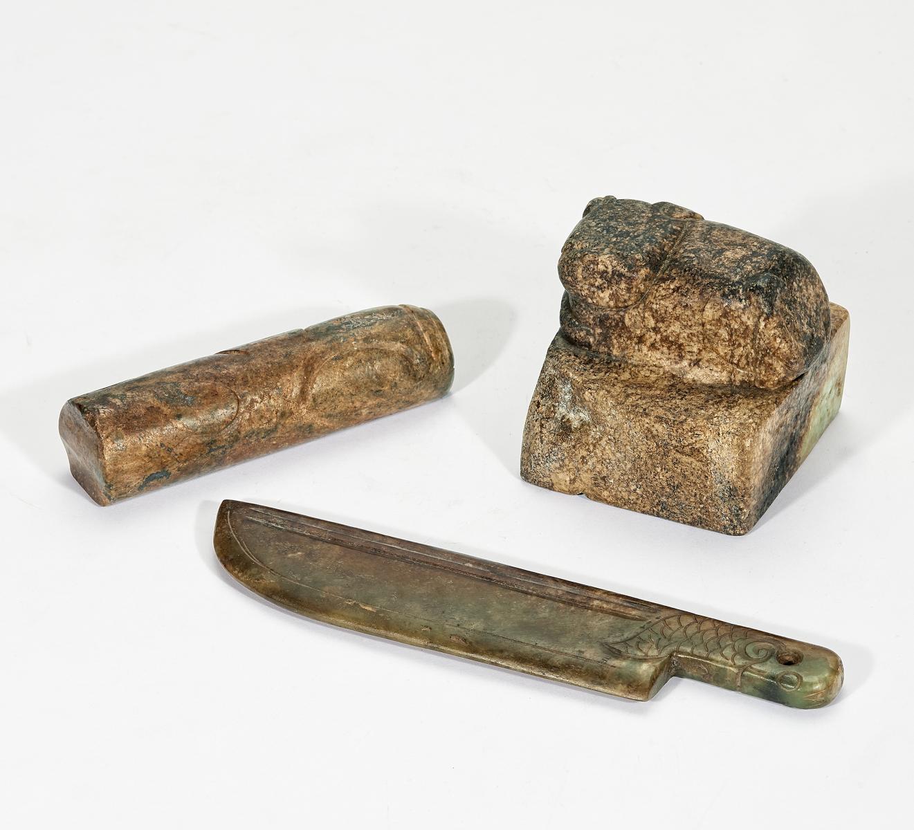 SIEGEL, MESSER UND PAPIERBESCHWERER AUS JADE.