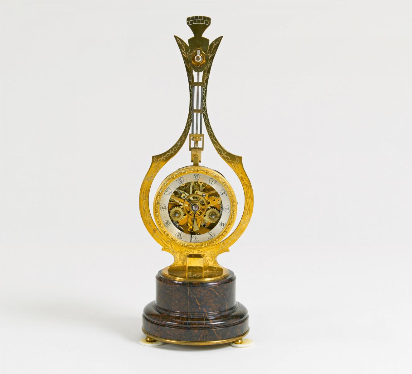 SKELETTUHR AUF RUNDEM STEINSOCKEL.