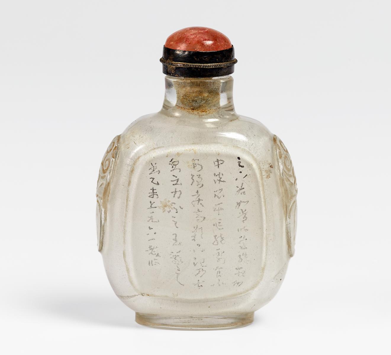 SNUFFBOTTLE. INNEN BEMALT. BERGKRISTALL.