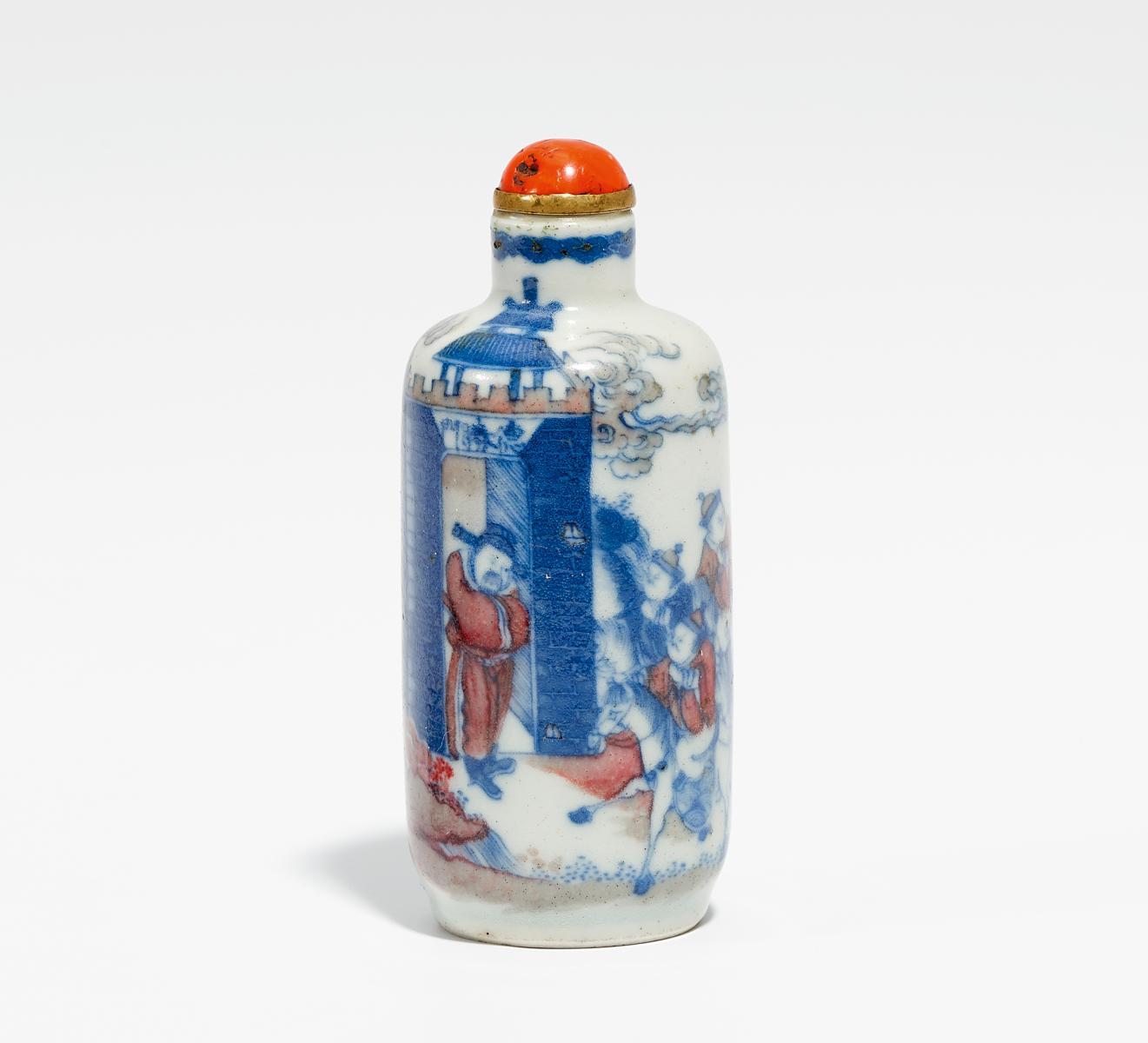 SNUFFBOTTLE. MANDSCHUREN VOR PEKING. PORZELLAN.