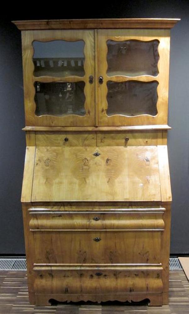 SPÄTBIEDERMEIER SEKRETÄR MIT VITRINENAUFSATZ.
