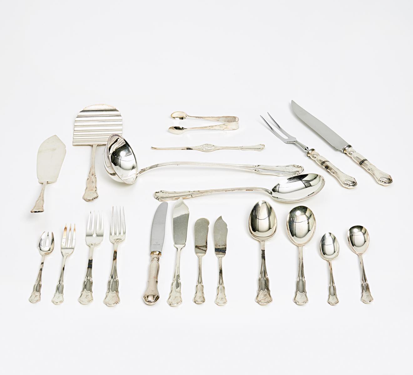 Speiselöffeln, 12 Vorspeiselöffeln, 12 Fischgabeln, 12 Fischmessern, 16 Kuchengabeln, 16